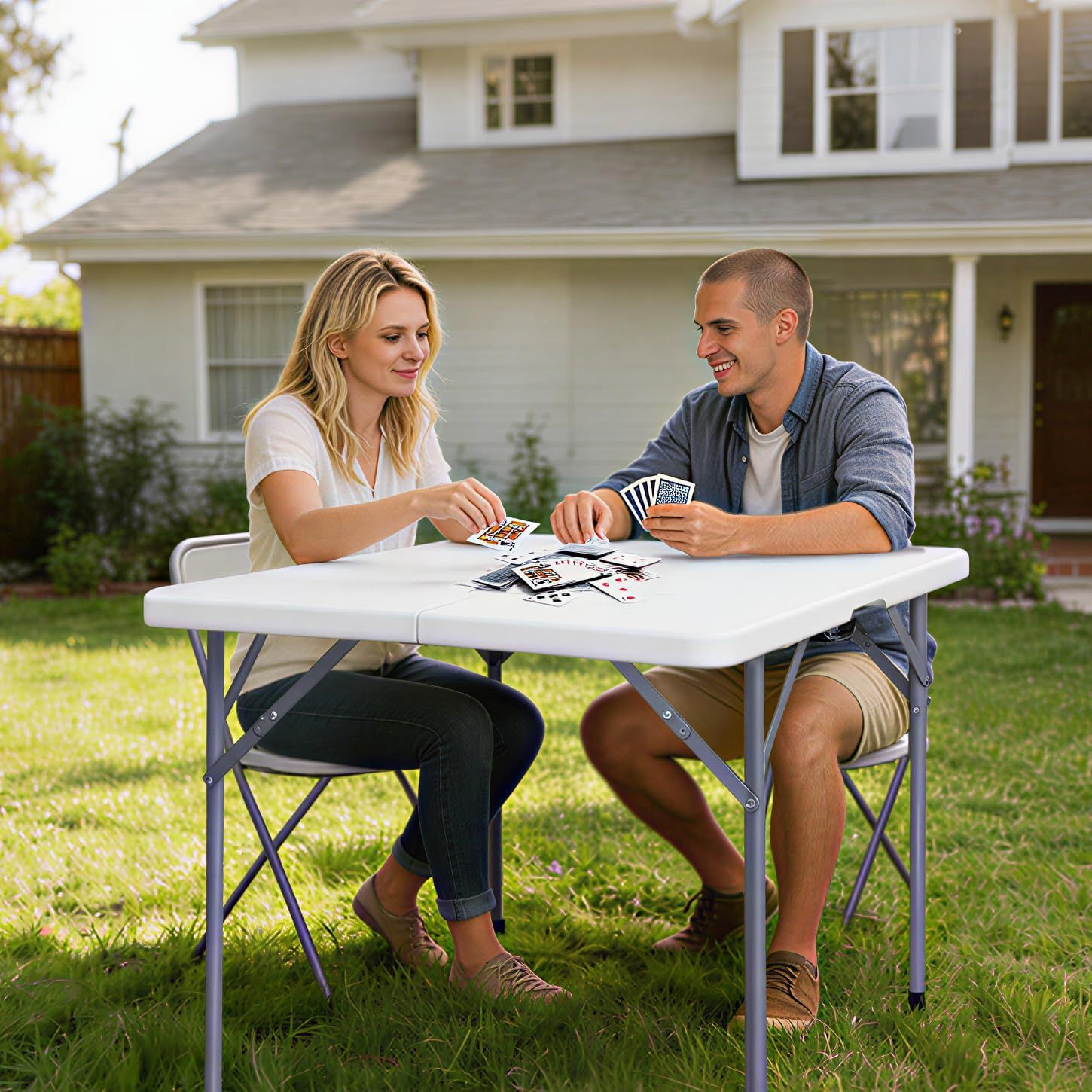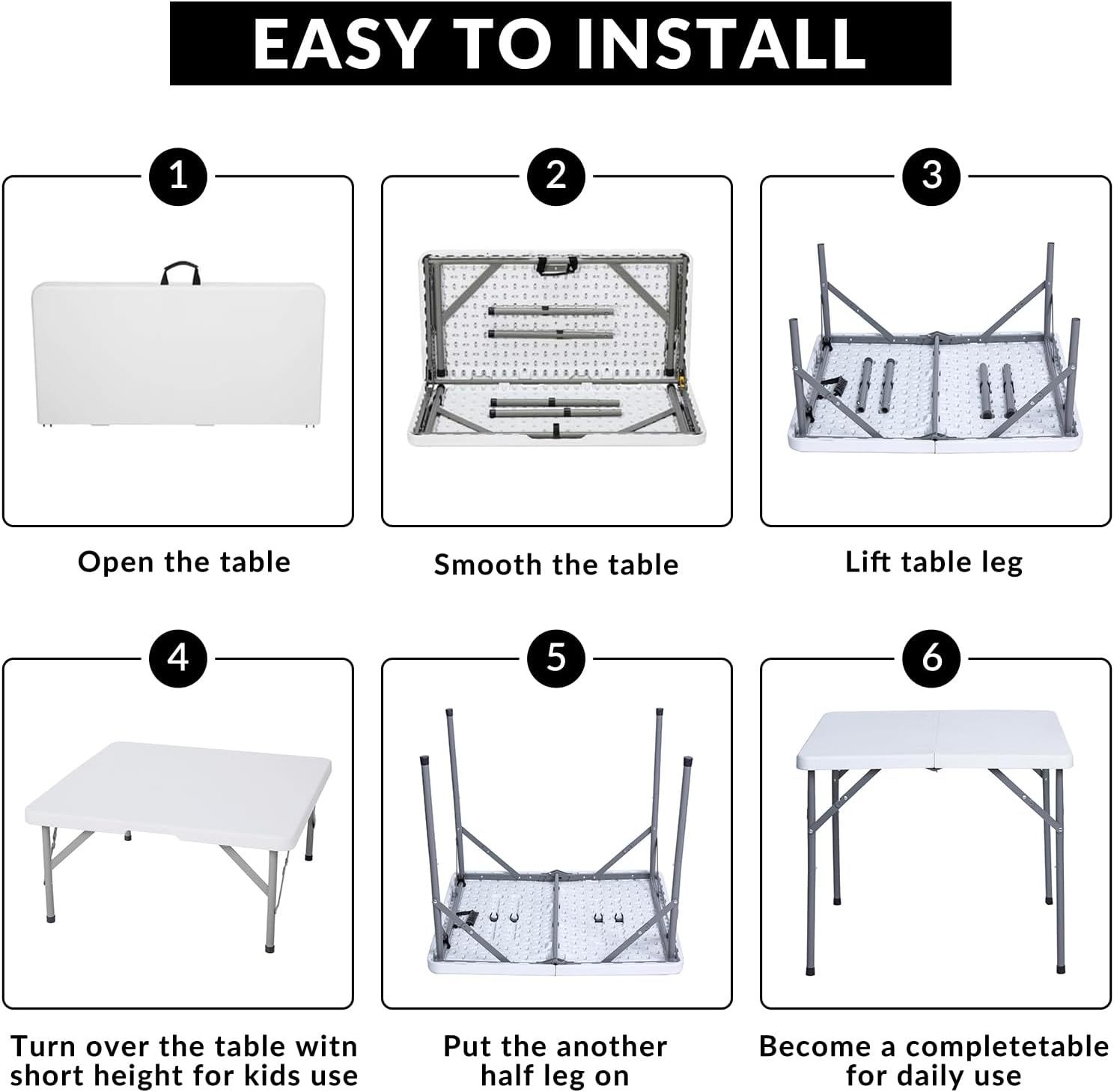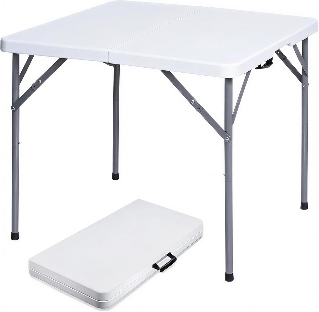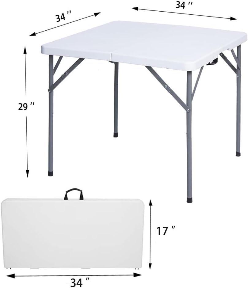 34" Square Folding Table, Plastic Commercial Folding Card Table with Collapsible Legs for Kitchen or Outdoor Party Wedding Event Indoor Outdoor Use, White