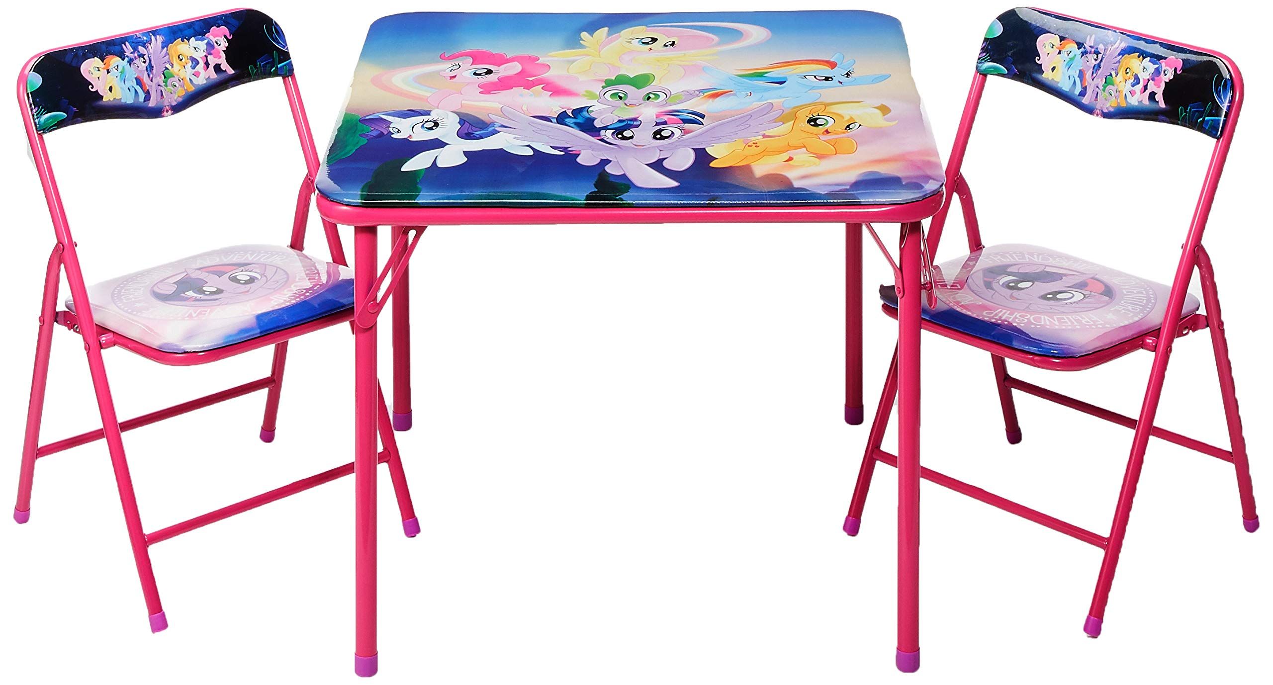 All Bluey fans will love this 3 piece table and chair set. The set contains a foldable table and two padded chairs that is perfect for sitting at to do homework, activities and eating. The sturdy metal frame is foldable - easy storage when your child is not using it. Chair dimensions: 20" H x 10" W x 12" L. Table dimensions: 24" L x 24" W x 18.5" H. Recommended for ages 3+