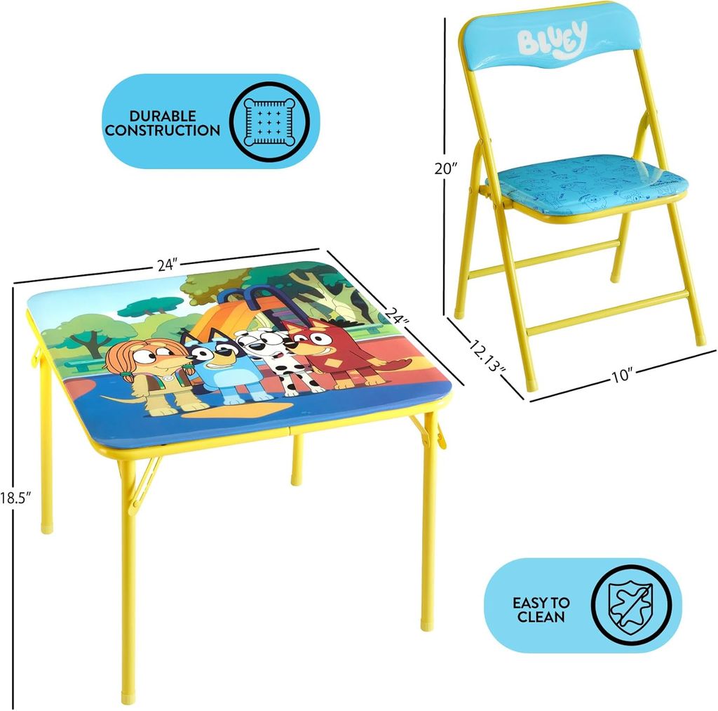Bluey Kids Table and Chair Set, 3 Piece Folding Activity Set with Square Table & 2 Chairs,Furniture for Playroom, Crafting, Ages 3+