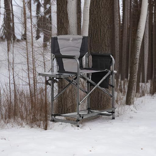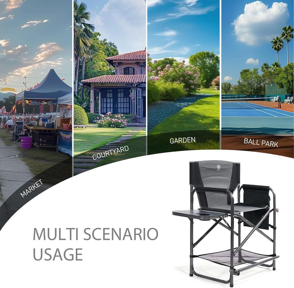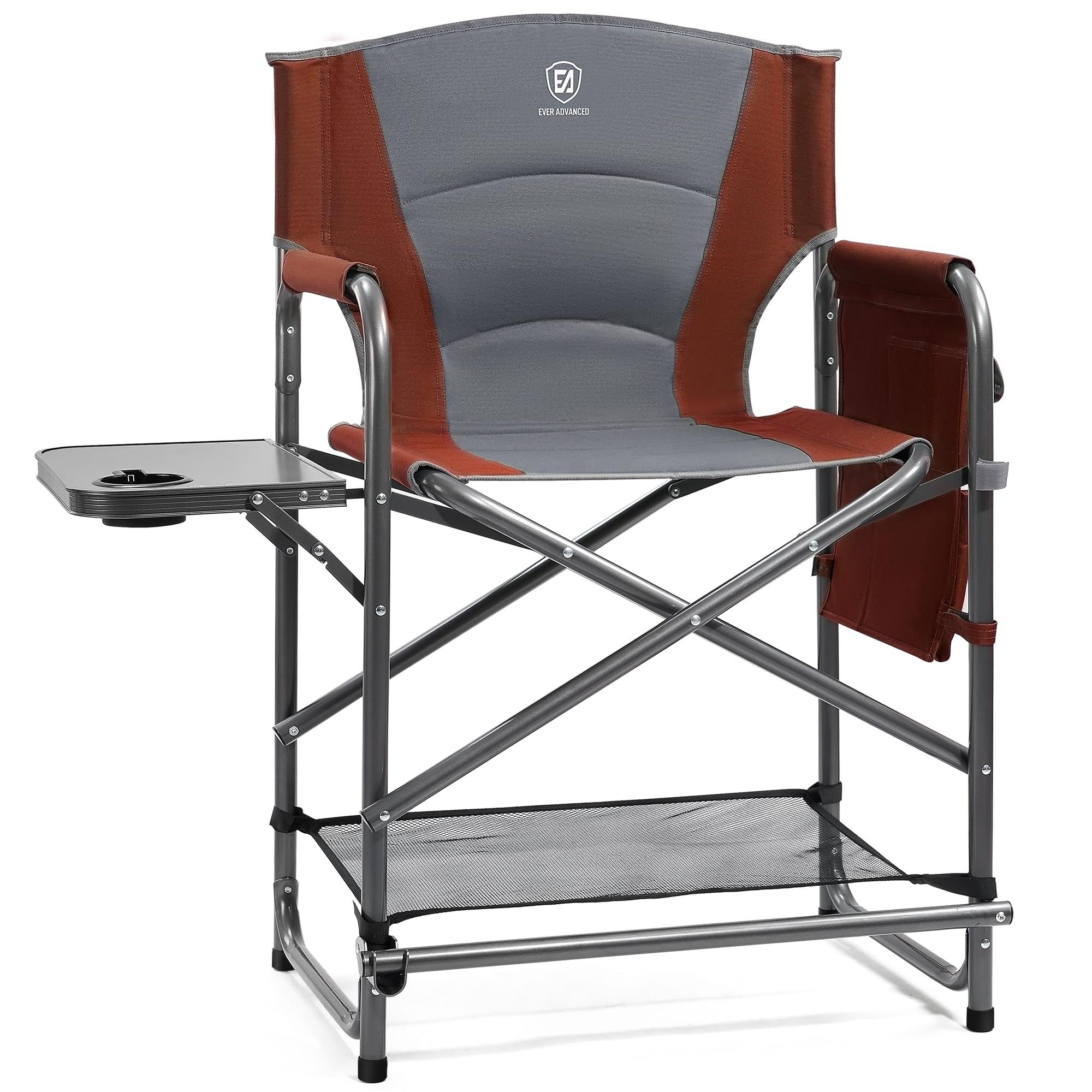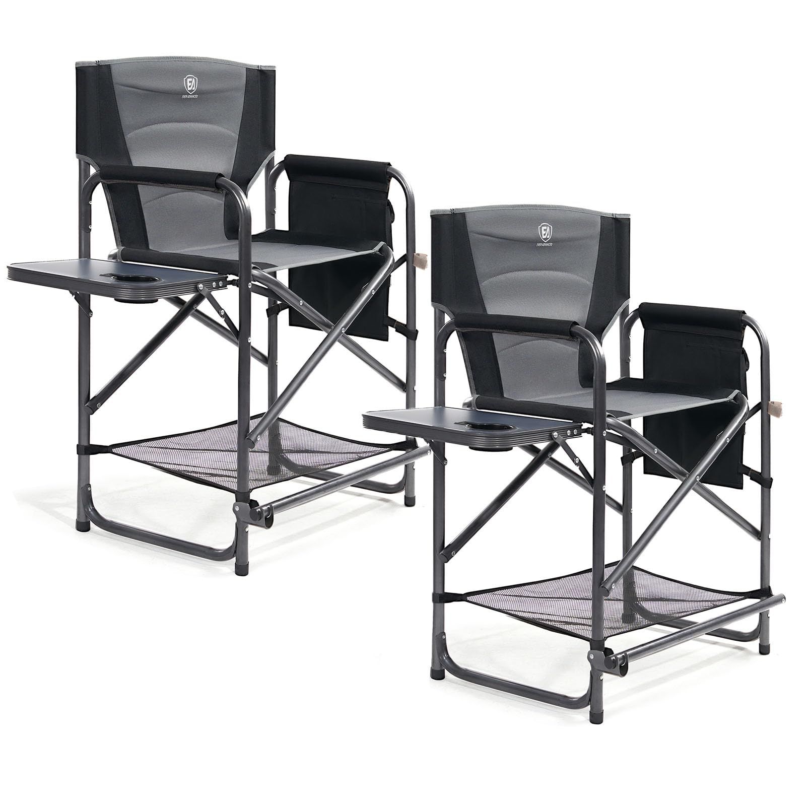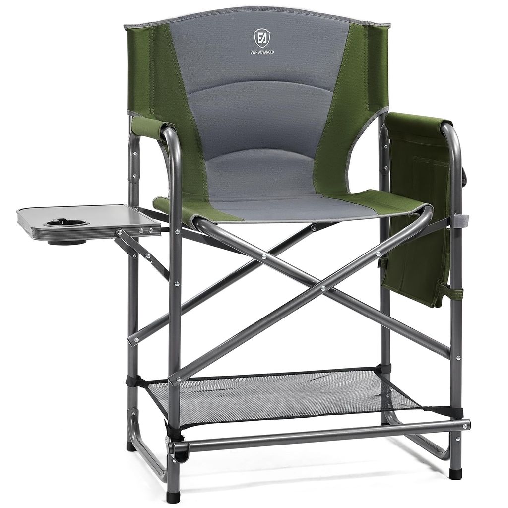 EVER ADVANCED Medium Tall Directors Chair Foldable Makeup Artist Chair Bar Height with Side Table Cup Holder and Pocket Footrest, Supports 400LBS (Grey, Seat Height: 23.2 inches)
