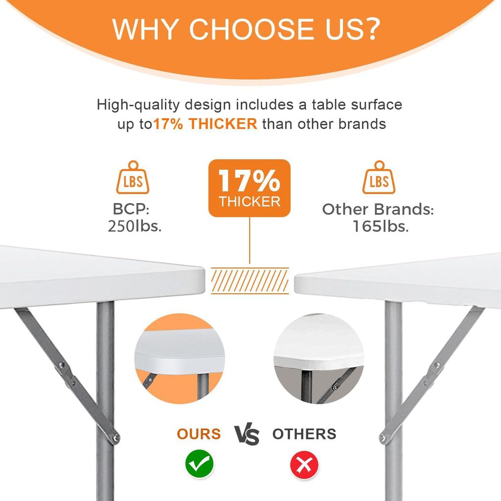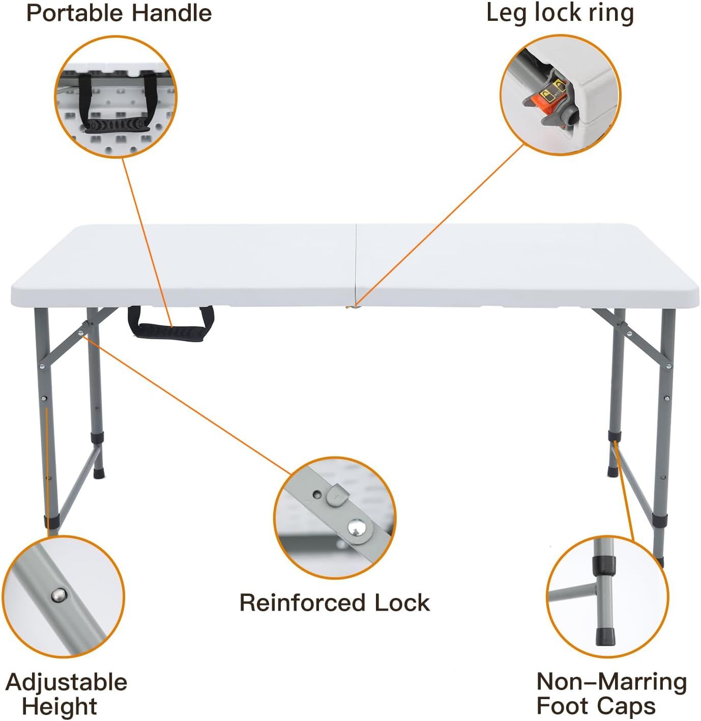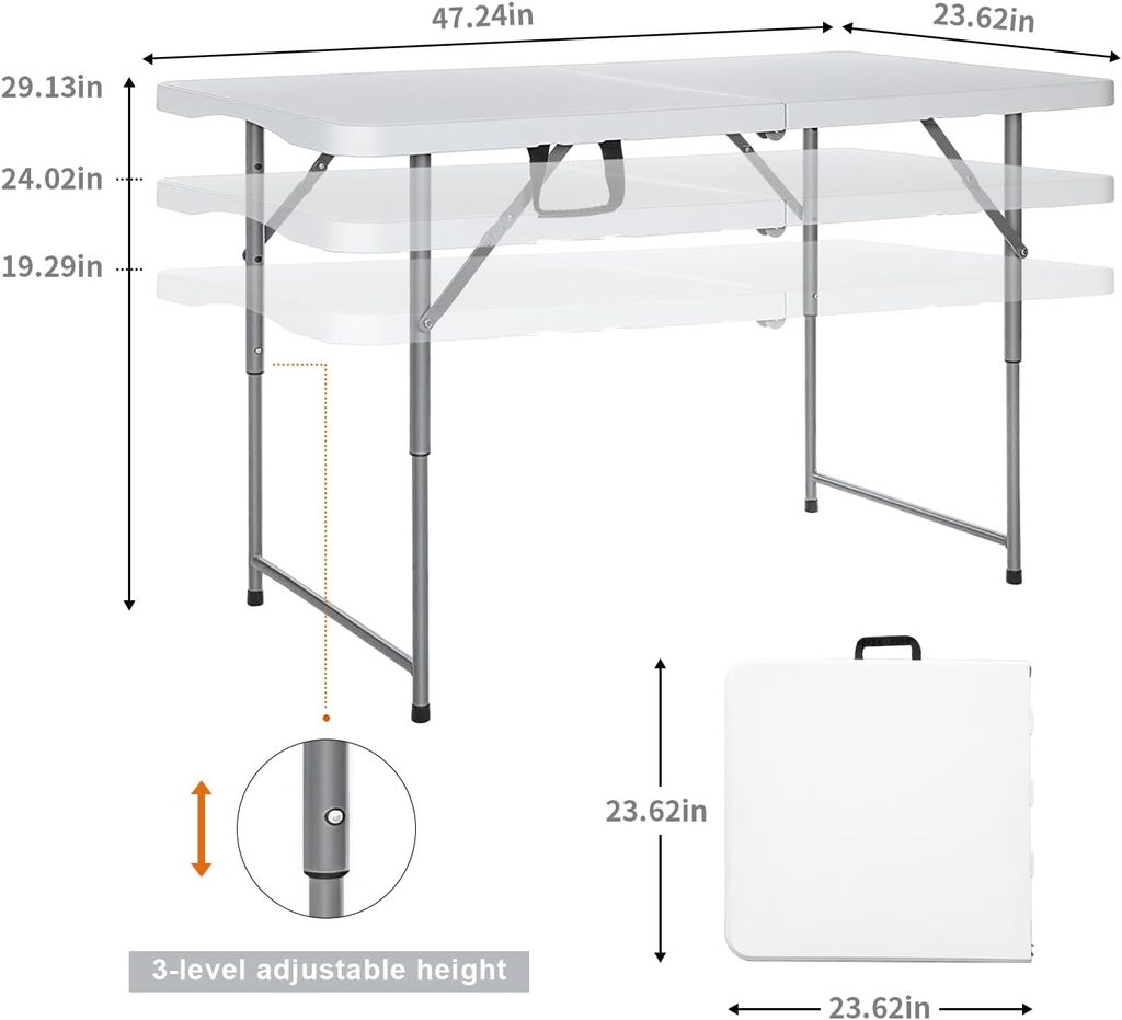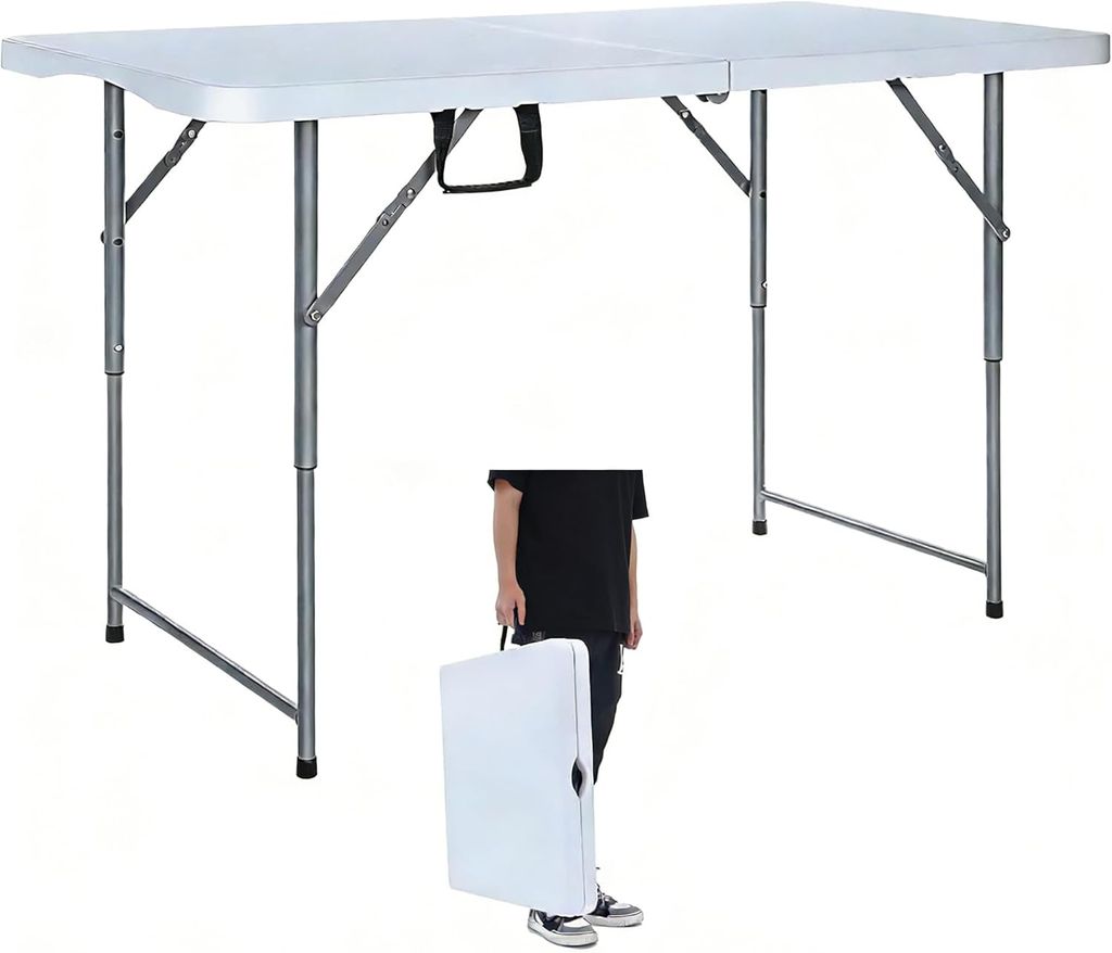 Folding Table 4 Foot Heavy Duty Plastic Utility Table Portable Thick Table Top Indoor Outdoor Adjustable Height Folding Table,Sewing Table Camping Party Gathering ,White