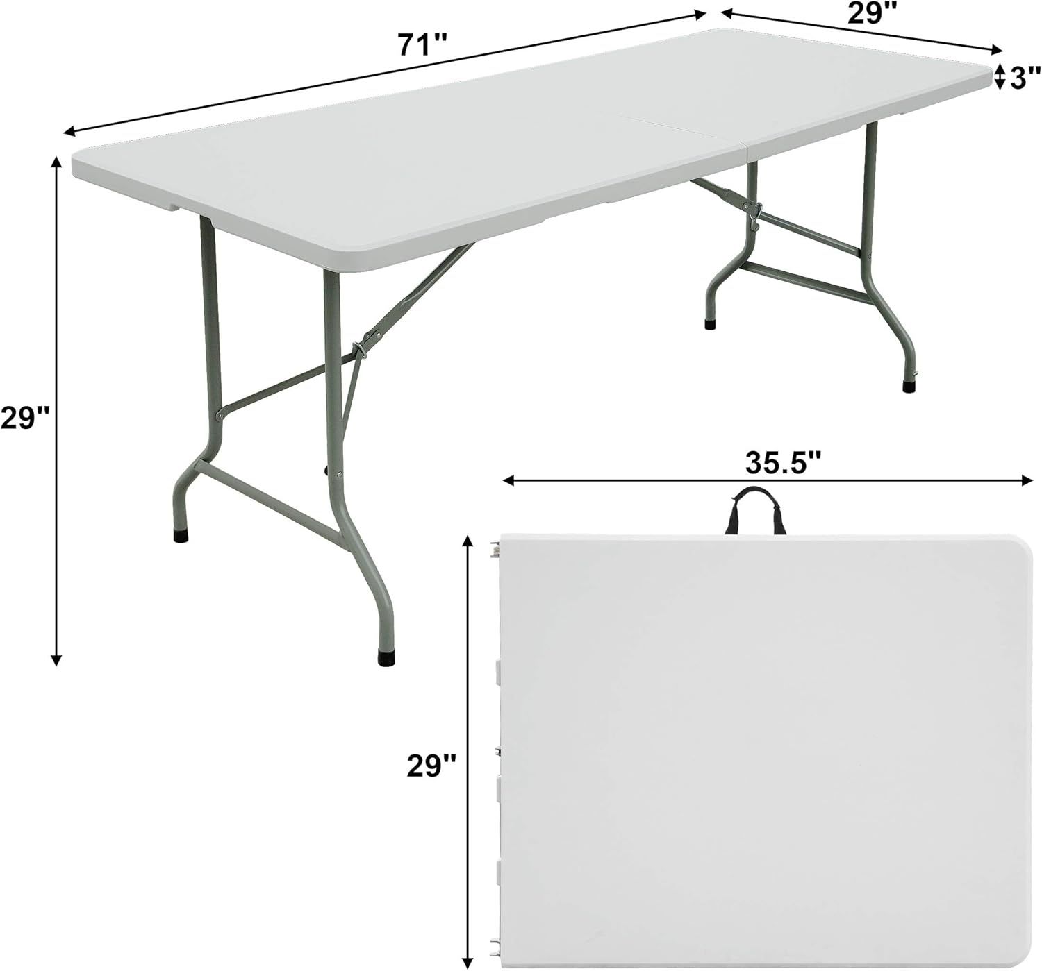 FORUP 6ft Table, Folding Utility Table, Fold-in-Half Portable Plastic Picnic Party Dining Camp Table (White)