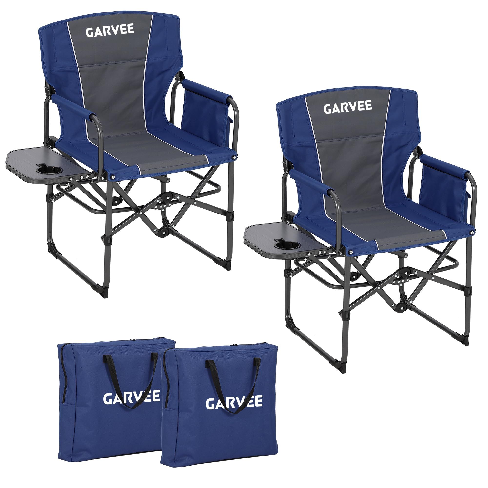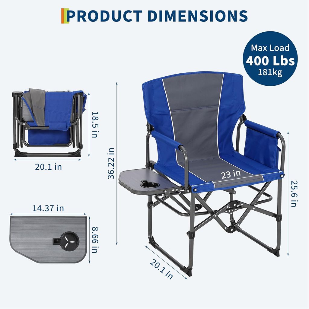 GarveeLife Oversized Directors Camping Chair, Portable Folding Chair for Adults Support 400 lbs, Heavy Duty Lawn Chair with Side Table, for Camping, Sports, Picnic, Beach, Fishing, Blue