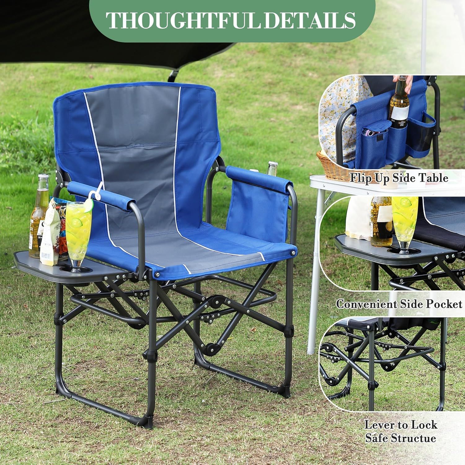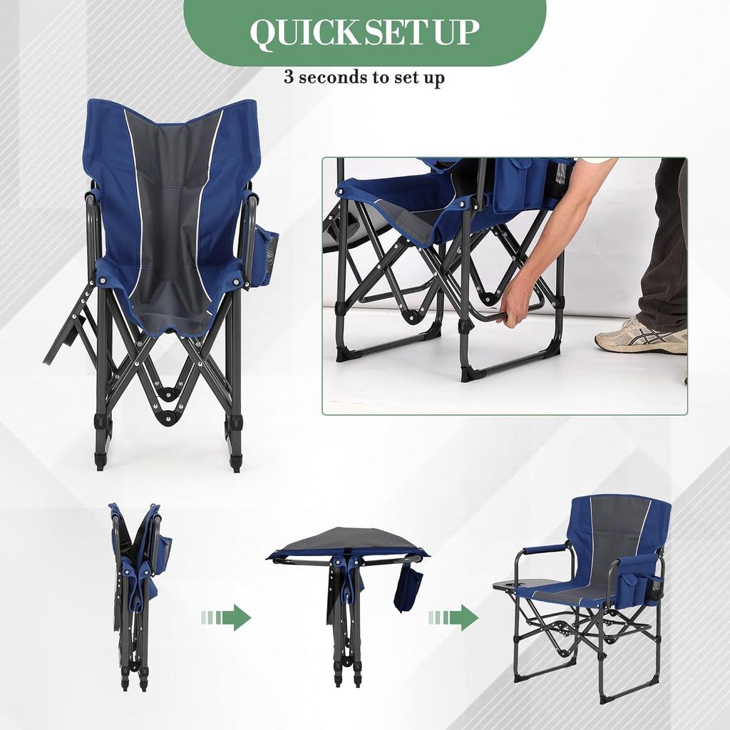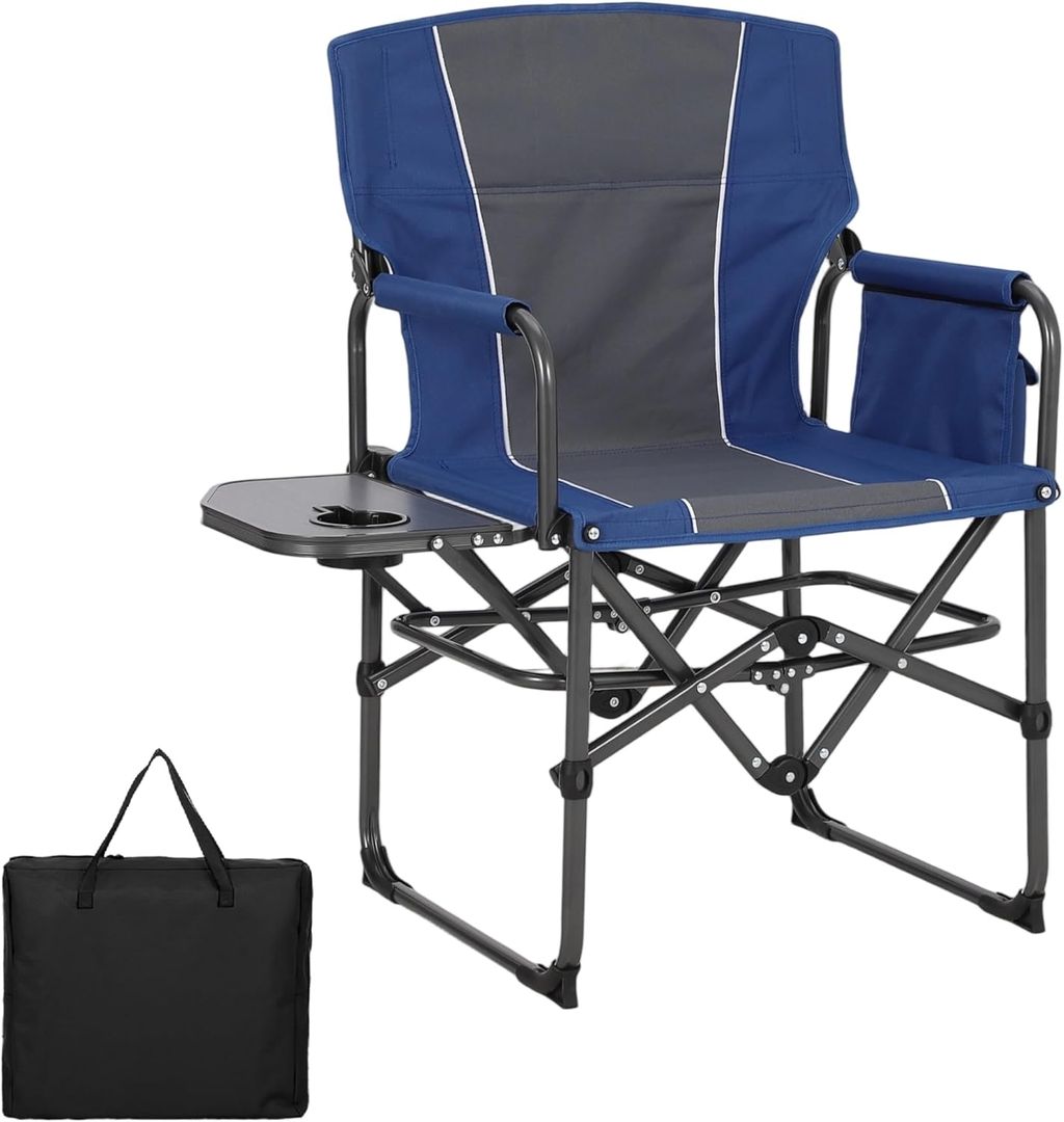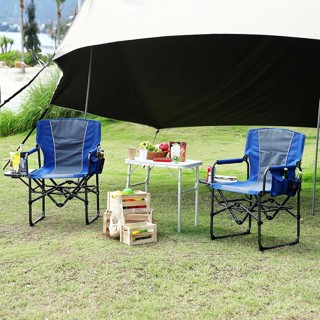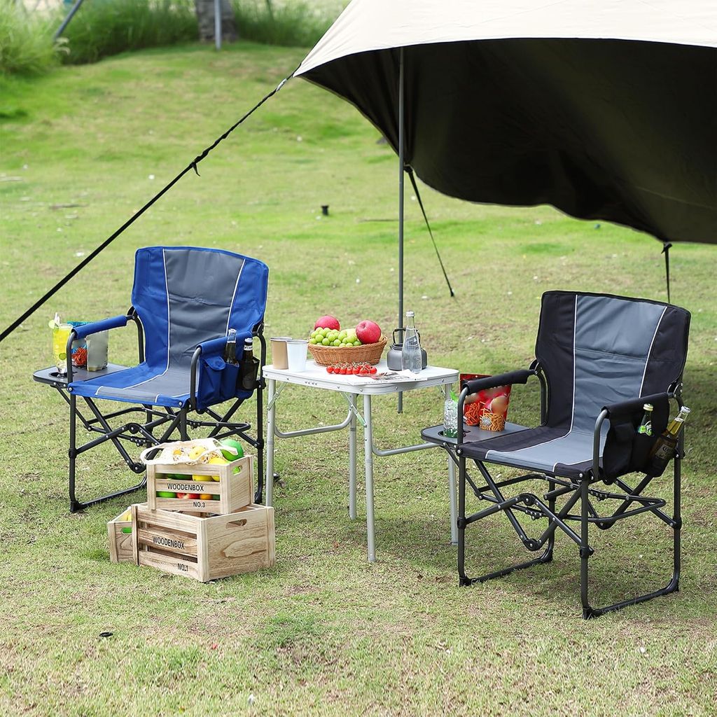 Oversized Camping Directors Chair, Portable Folding Lawn Chairs for Adults Heavy Duty with Side Table, Outdoor Foldable Camp Chair with Pocket for Beach, Fishing, Picnic, Outdoor Foldable Camp Chair