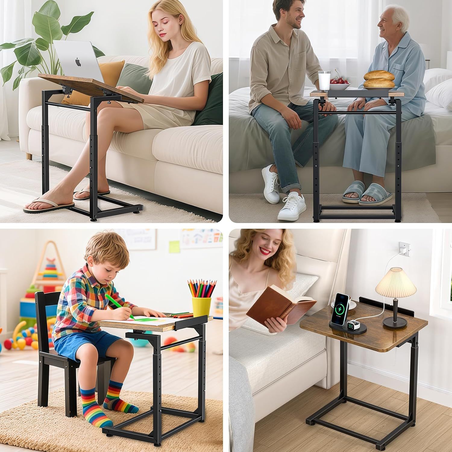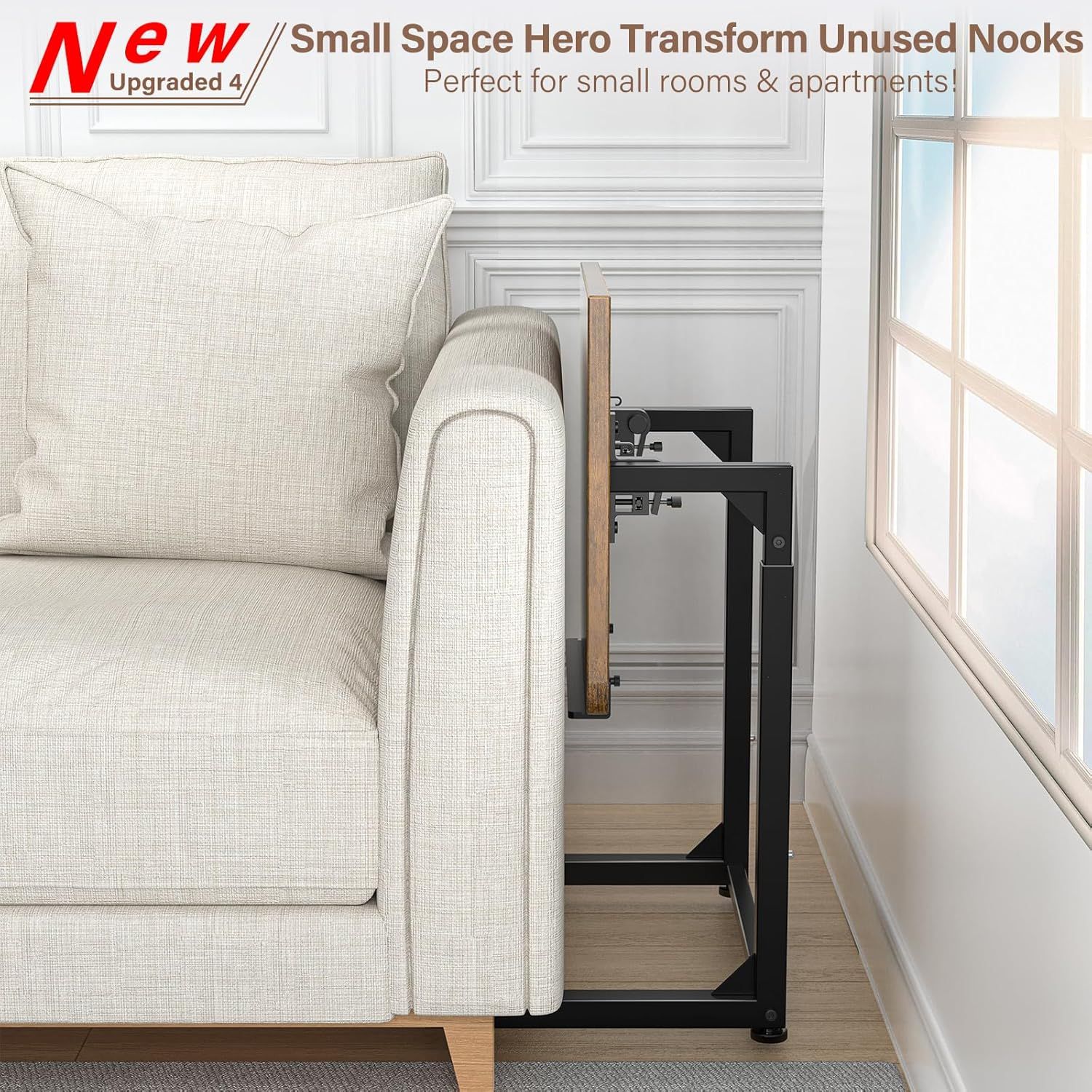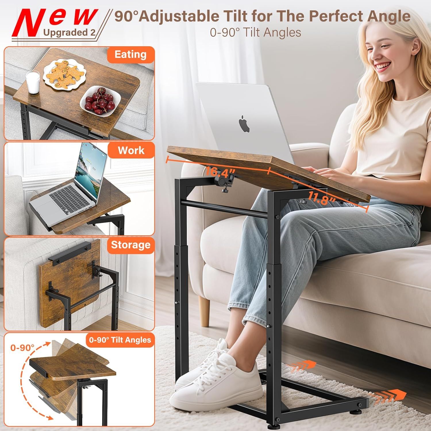 Tv Tray Table, 8-Level Adjustable Height Couch Side Table,90° Tilt Angle Adjustments C-Shaped End Table, with Phone & Tablet Slot Sofa Computer Desk for Couch, Sofa, Bed, Chair, Living Room (Brown)