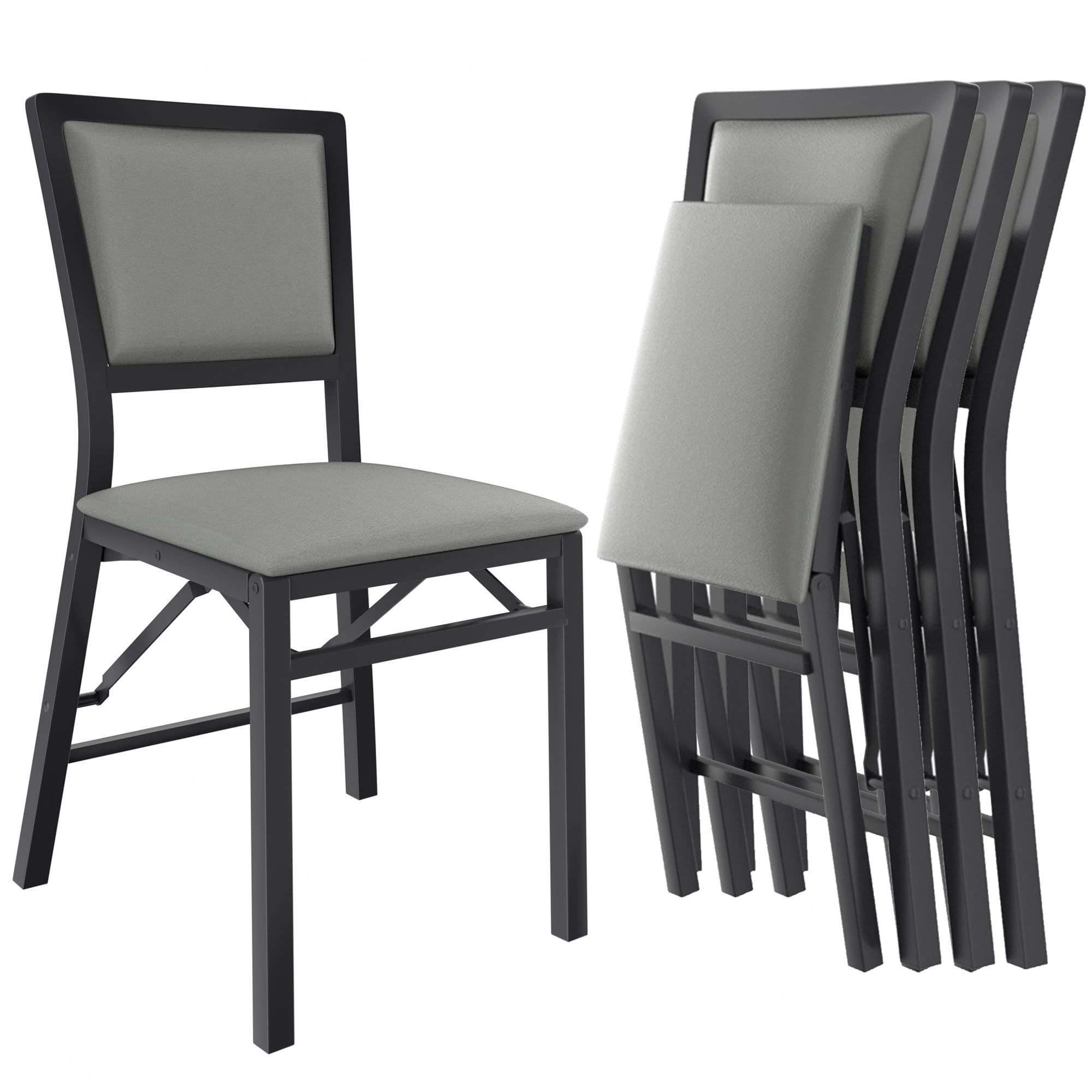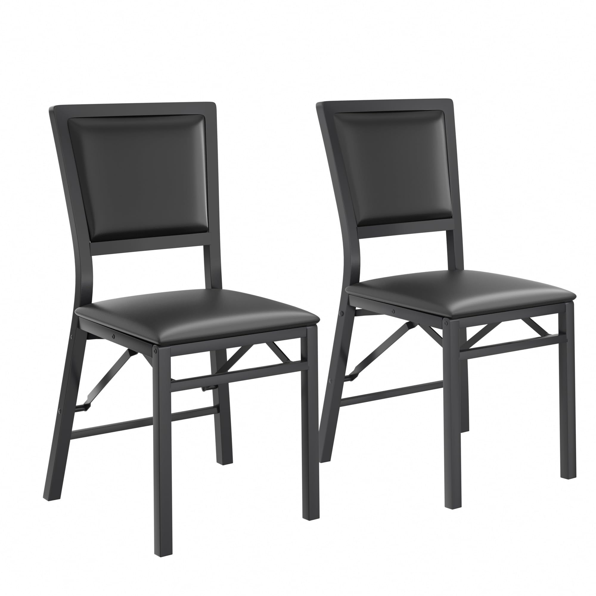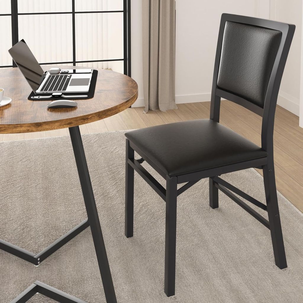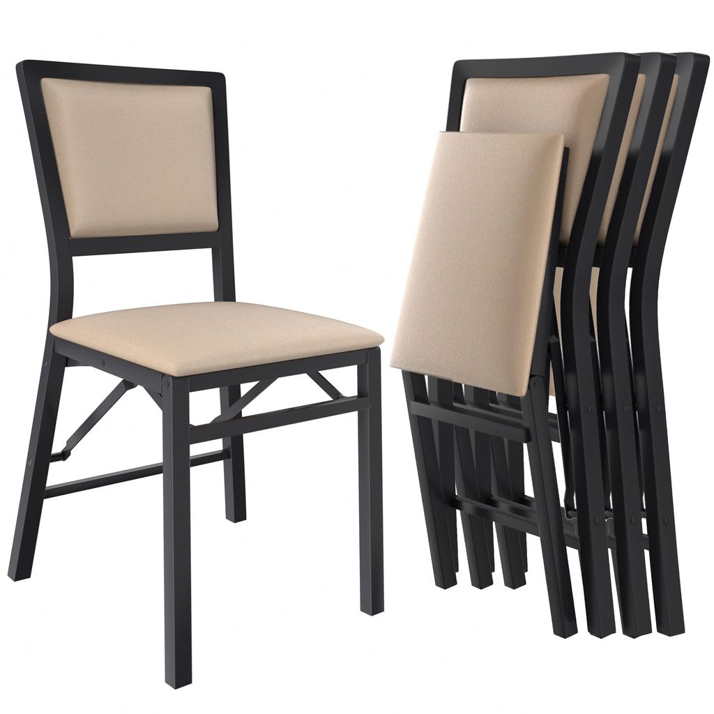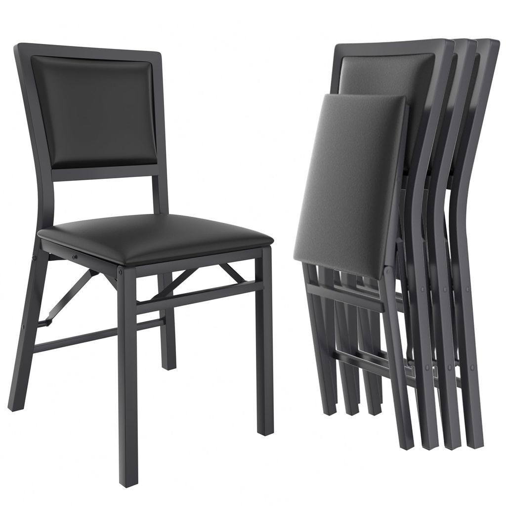 VECELO Folding Chairs Set of 4 with Cushion, Foldable Padded Seats with Heavy Duty Metal Frame for Kitchen/Dining/Living Room, No Assembly & Space Saving Design, Black