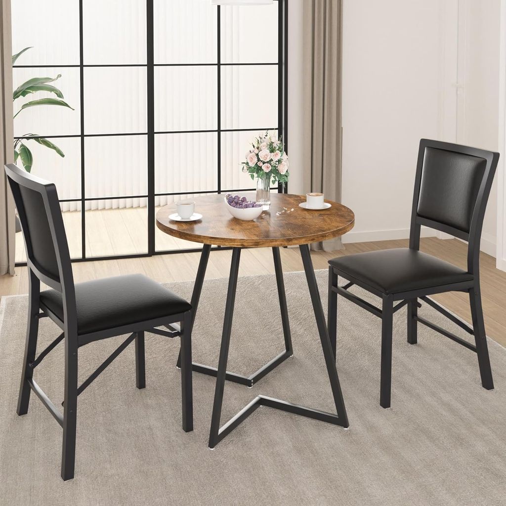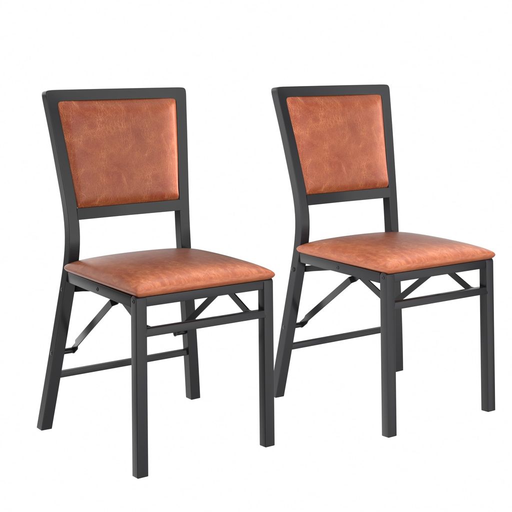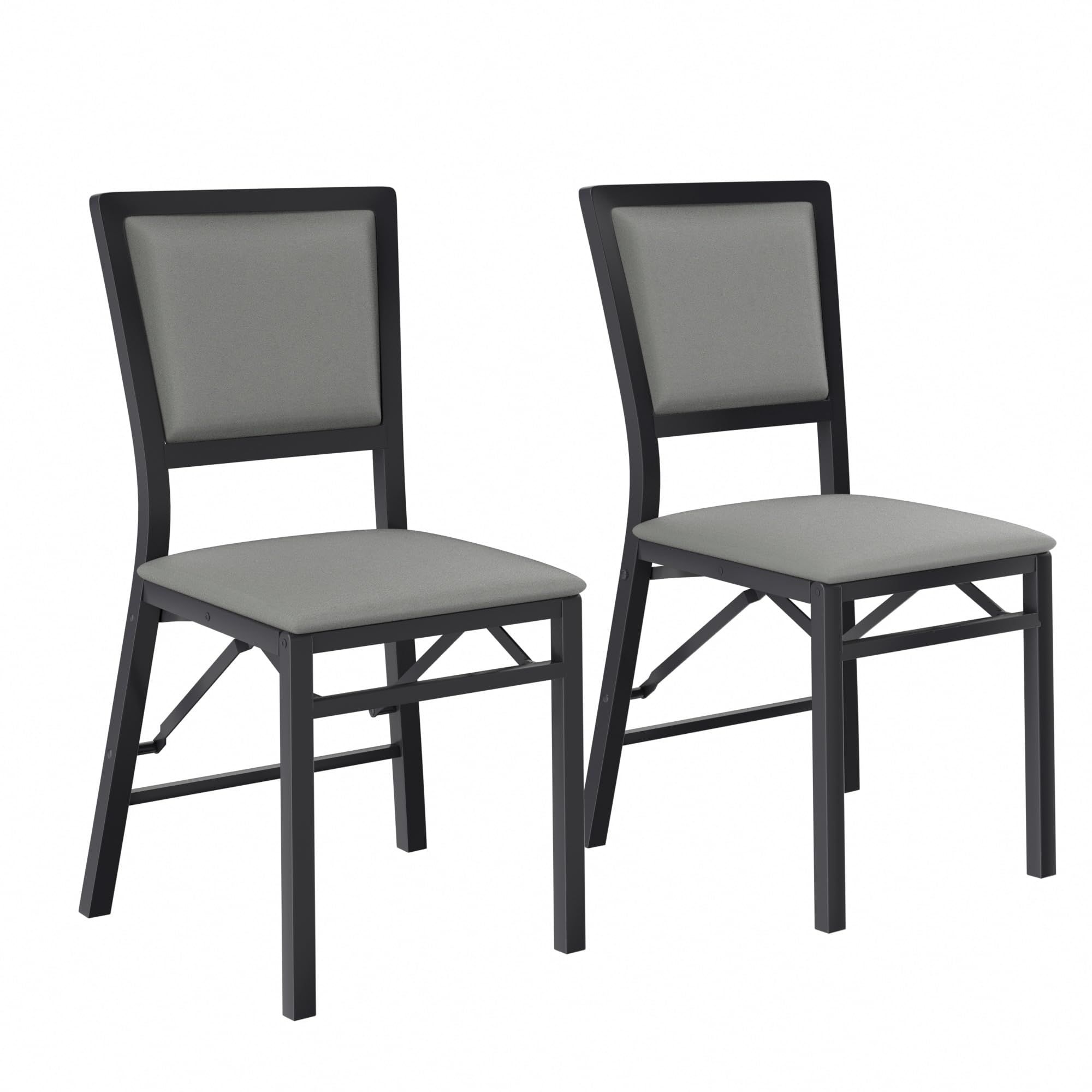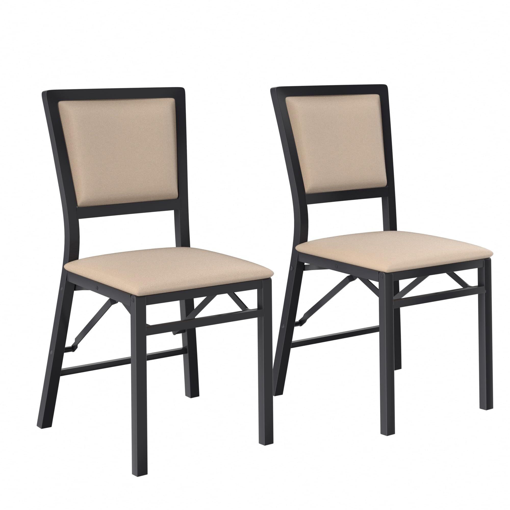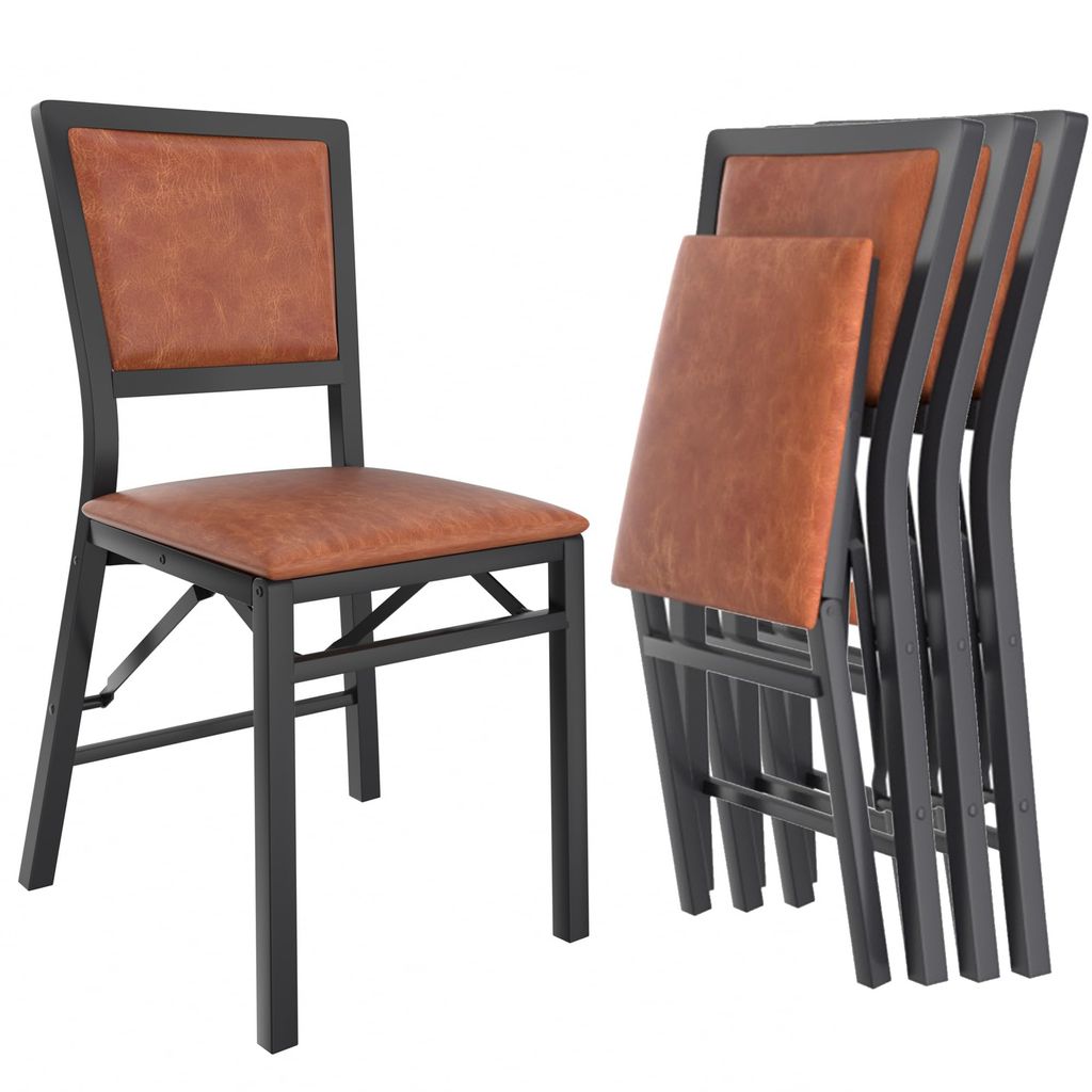 VECELO Folding Chairs Set of 4 with Cushion, Foldable Padded Seats with Heavy Duty Metal Frame for Kitchen/Dining/Living Room, No Assembly & Space Saving Design, Black