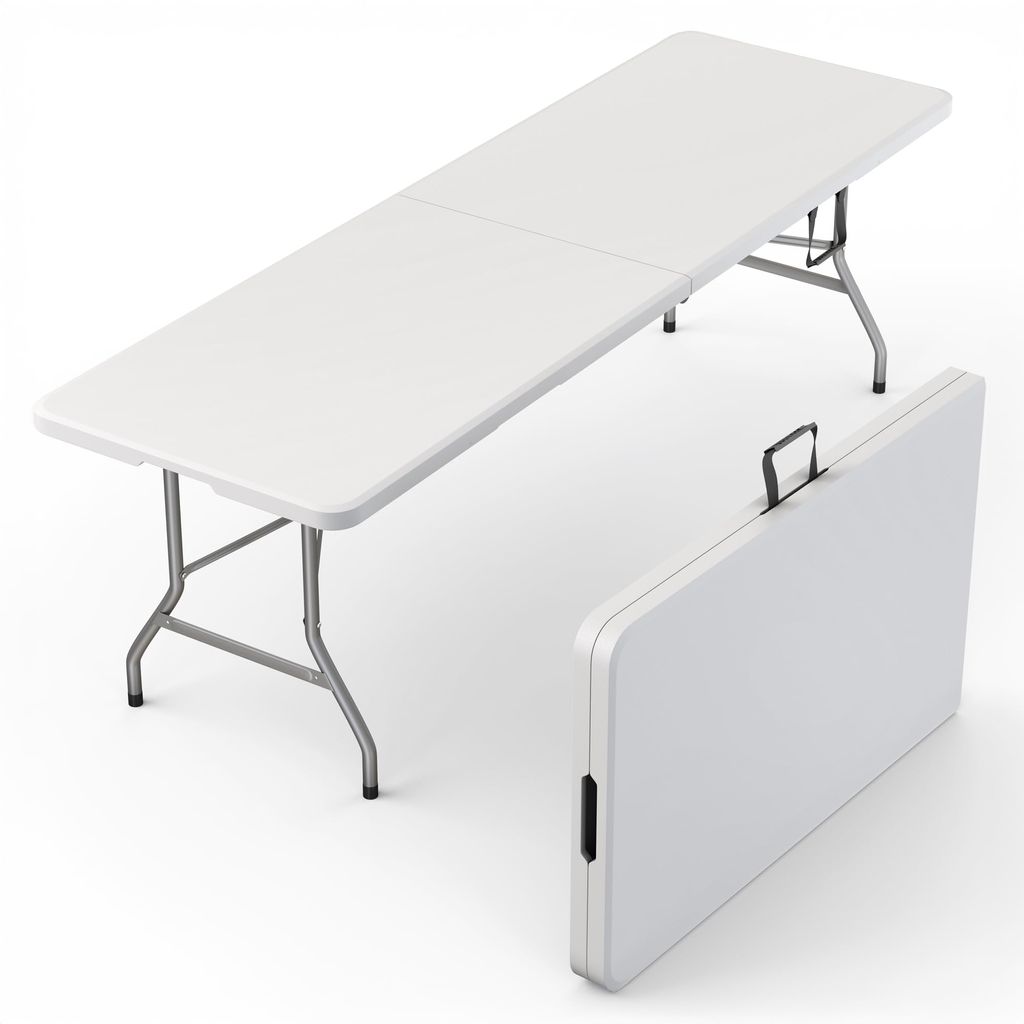 6 Feet Foldable Table with Built in Handle & Steel Legs | 6FT Heavy Duty Folding Portable | Perfect for Party, Dining, Wedding, Events, Picnic Indoor, Outdoor, Camping, Utility, Folding - 6 Foot