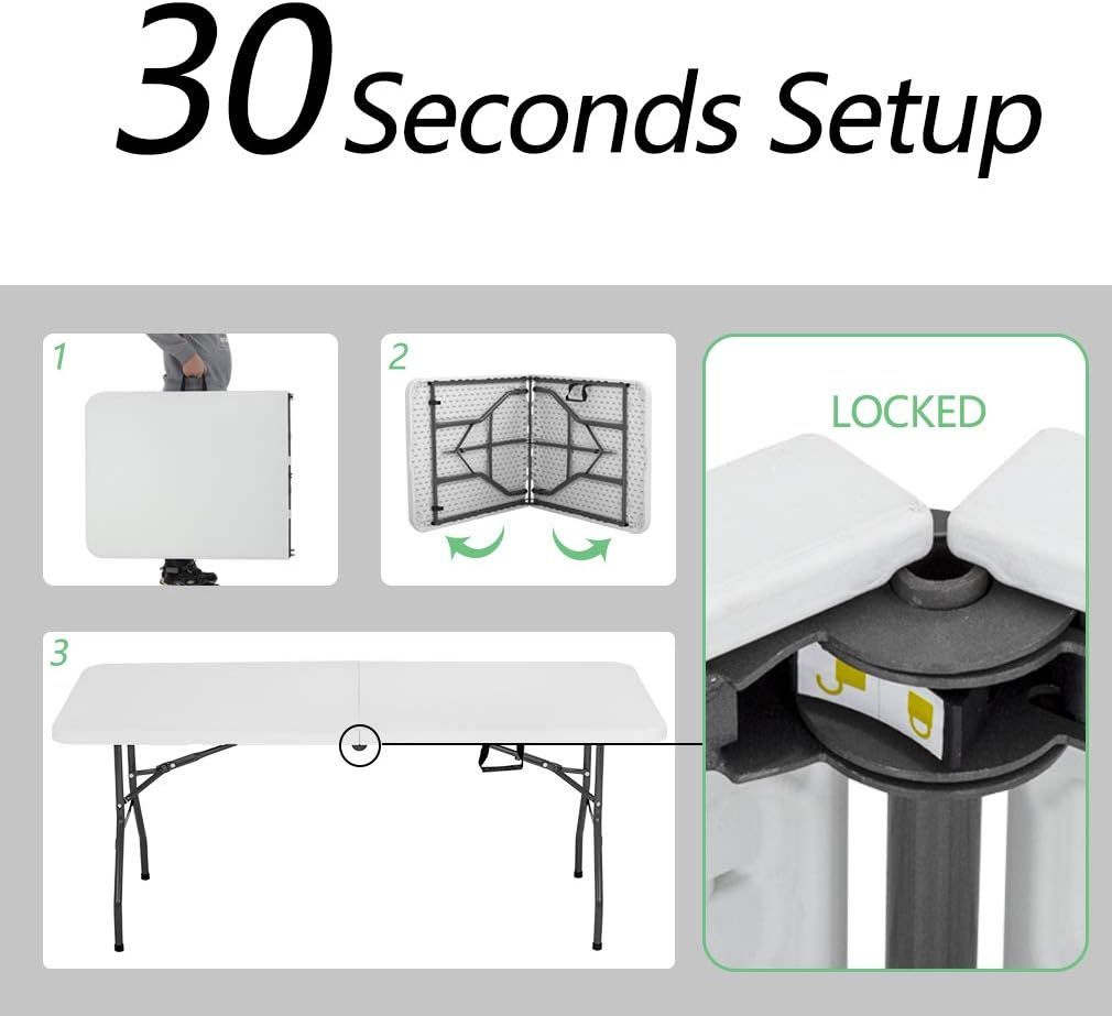 BestOffice 6FT Picnic Table Folding, Camping, Plastifor Party Event,White