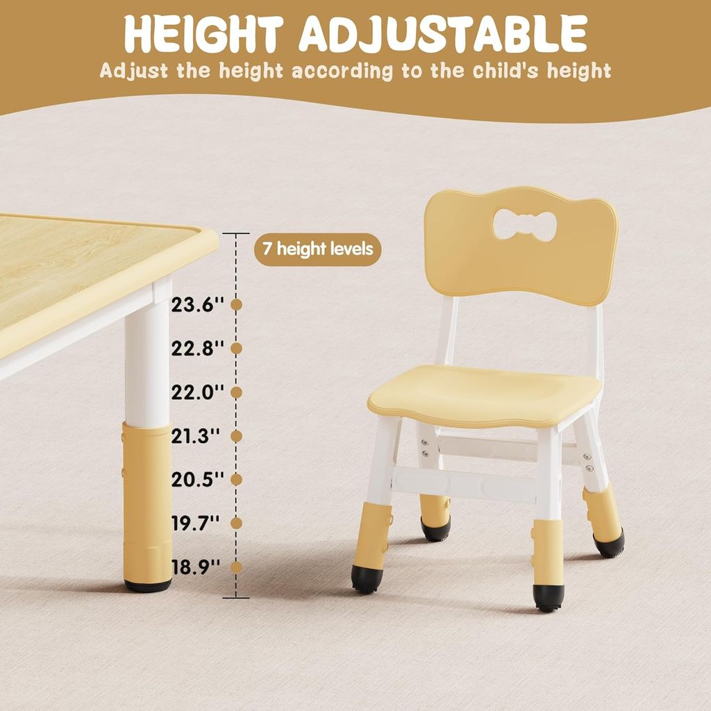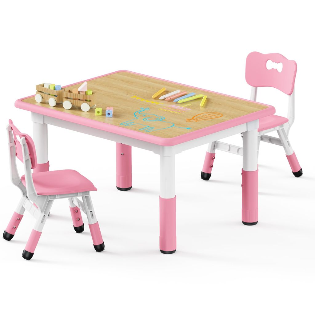 Brelley Kids Table and 2 Chairs Set, Height Adjustable Toddler Desk 31.5" L x 23.6" W and Chair Set, Graffiti Desktop, Classroom/Daycare/Home, Children Multi-Activity Table for Ages 3-8