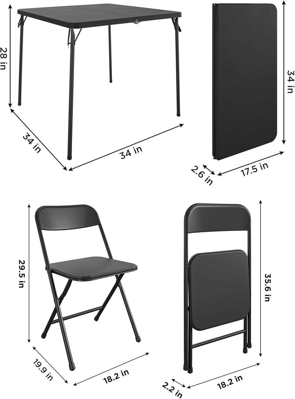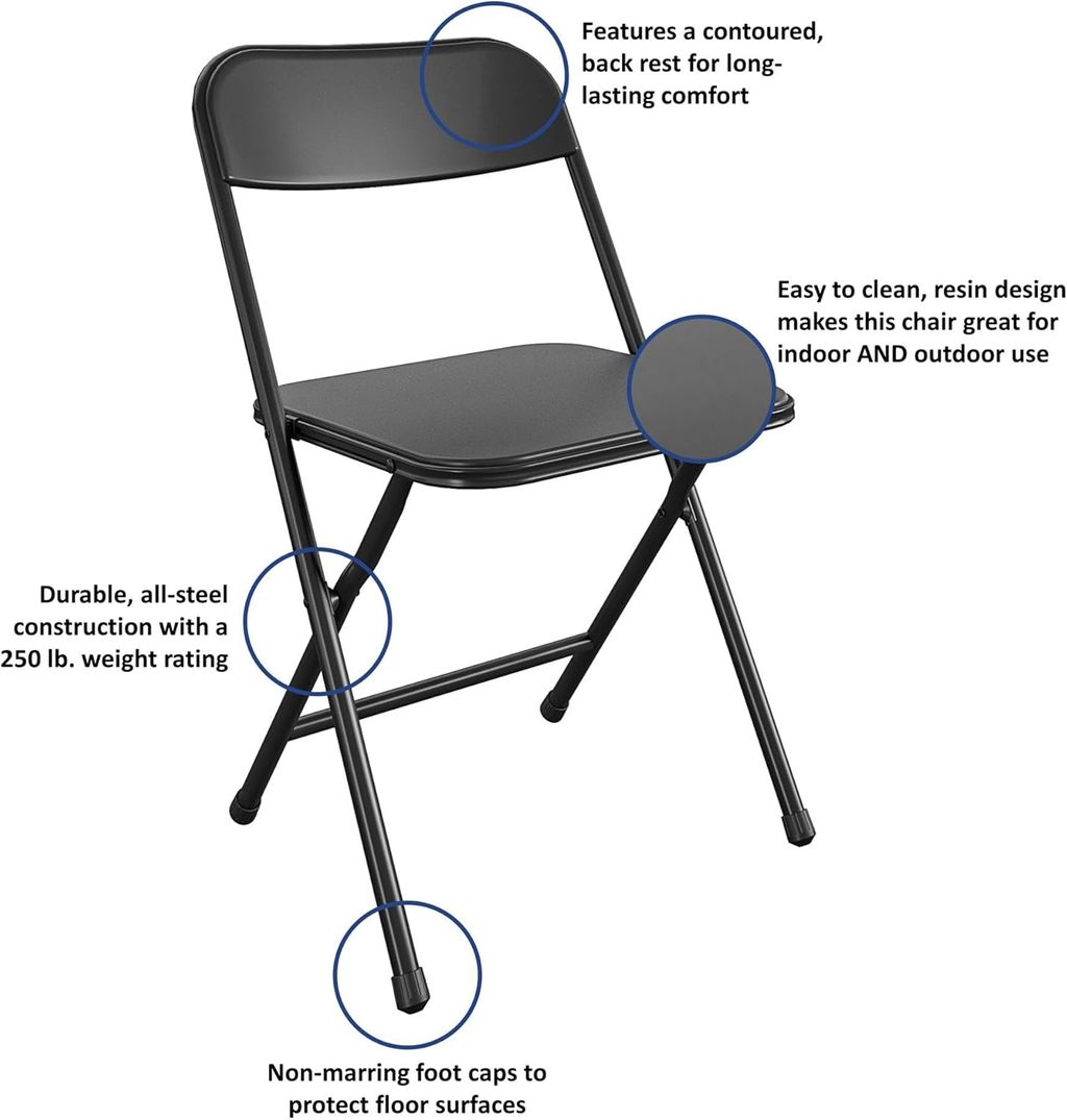 CoscoProducts Indoor/Outdoor Solid Resin Folding Table & Chair Dining Set, Perfect for Everyday Use, Hosting, Game Night, or Holiday Celebrations, 5-Piece, Black