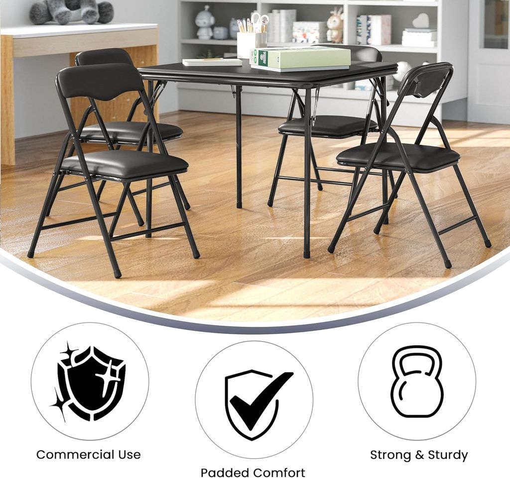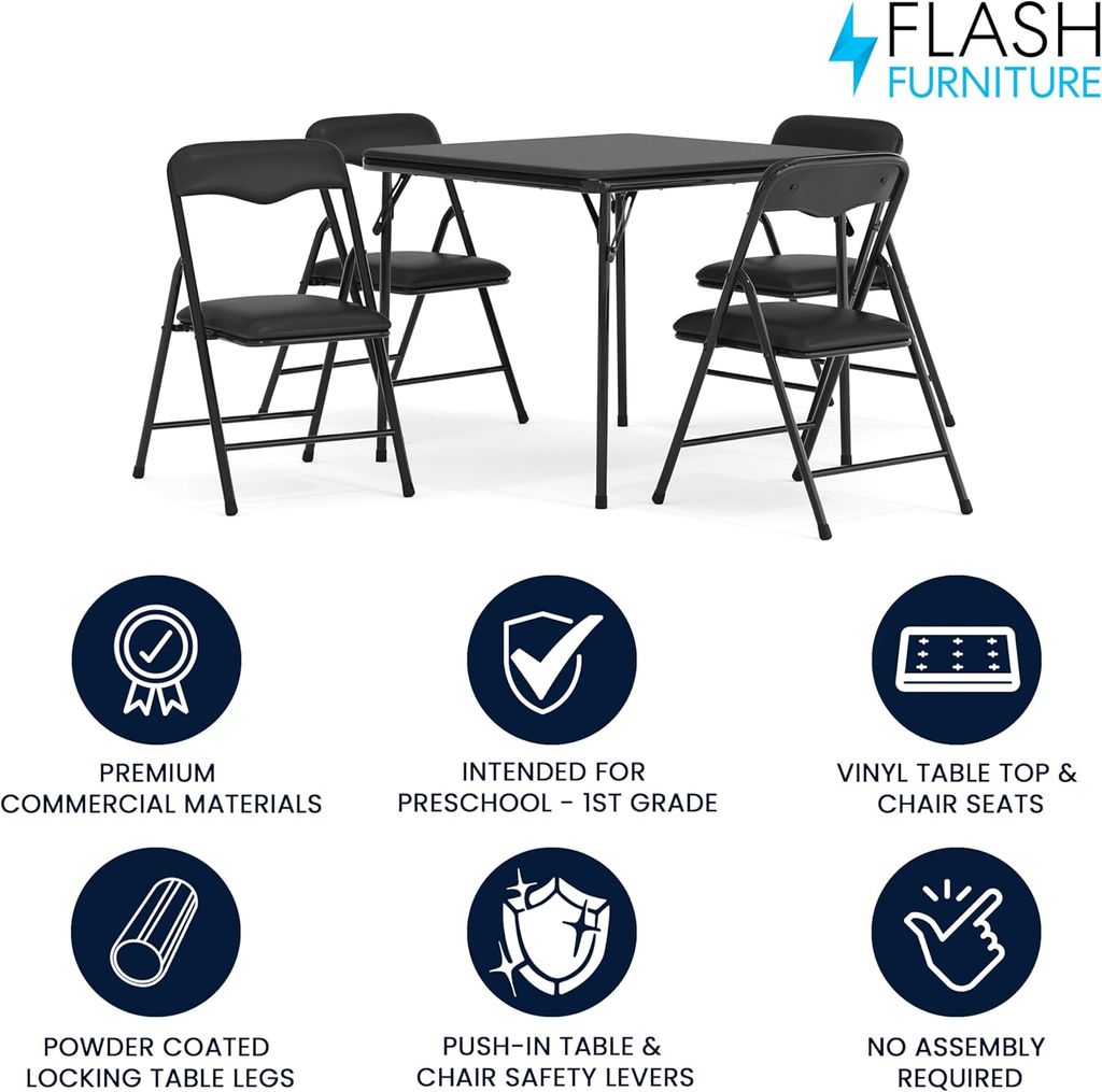 Flash Furniture Mindy Kids 5-Piece Folding Table and Chairs Set for Daycare and Classrooms, Children's Activity Table and Chairs Set, Black