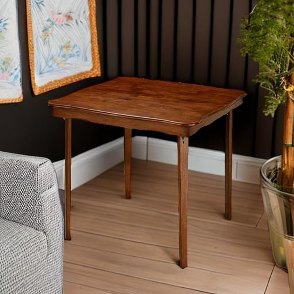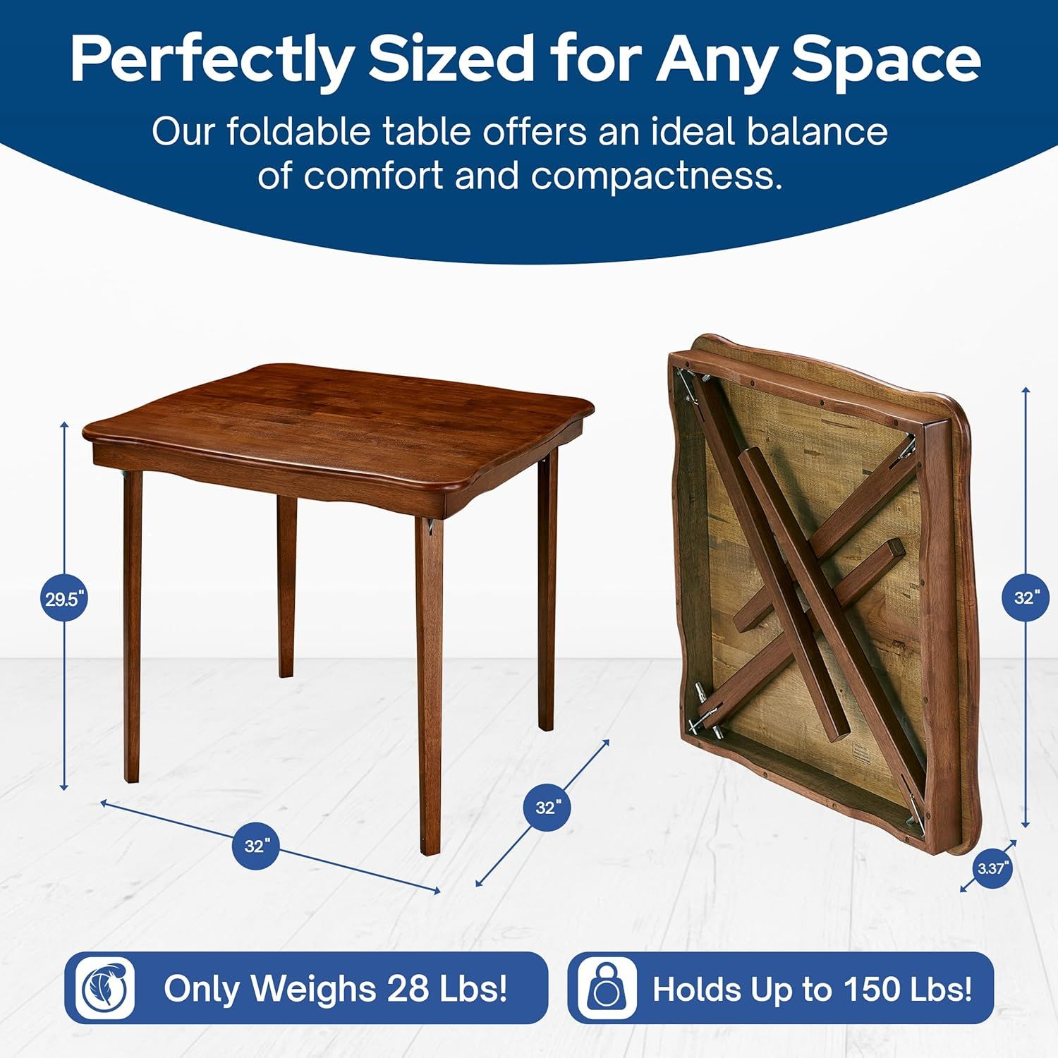Meco Stakmore Stylish Durable Versatile Square Solid Wood Scalloped Edge Compact Folding Traditional Card Table for Home Use, Cherry