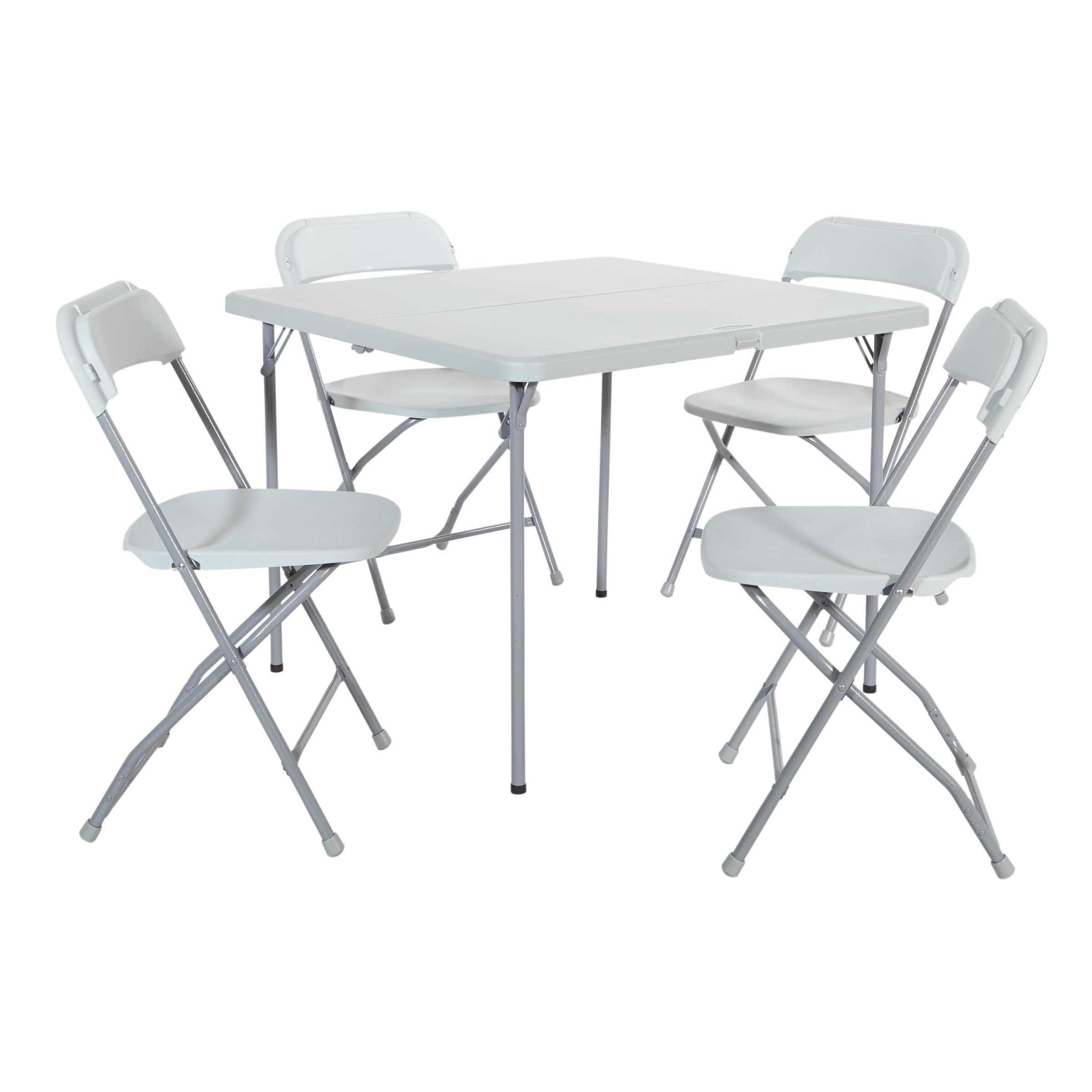 Office Star Resin 5-Piece Folding Square Table and Chair Set, Light Grey