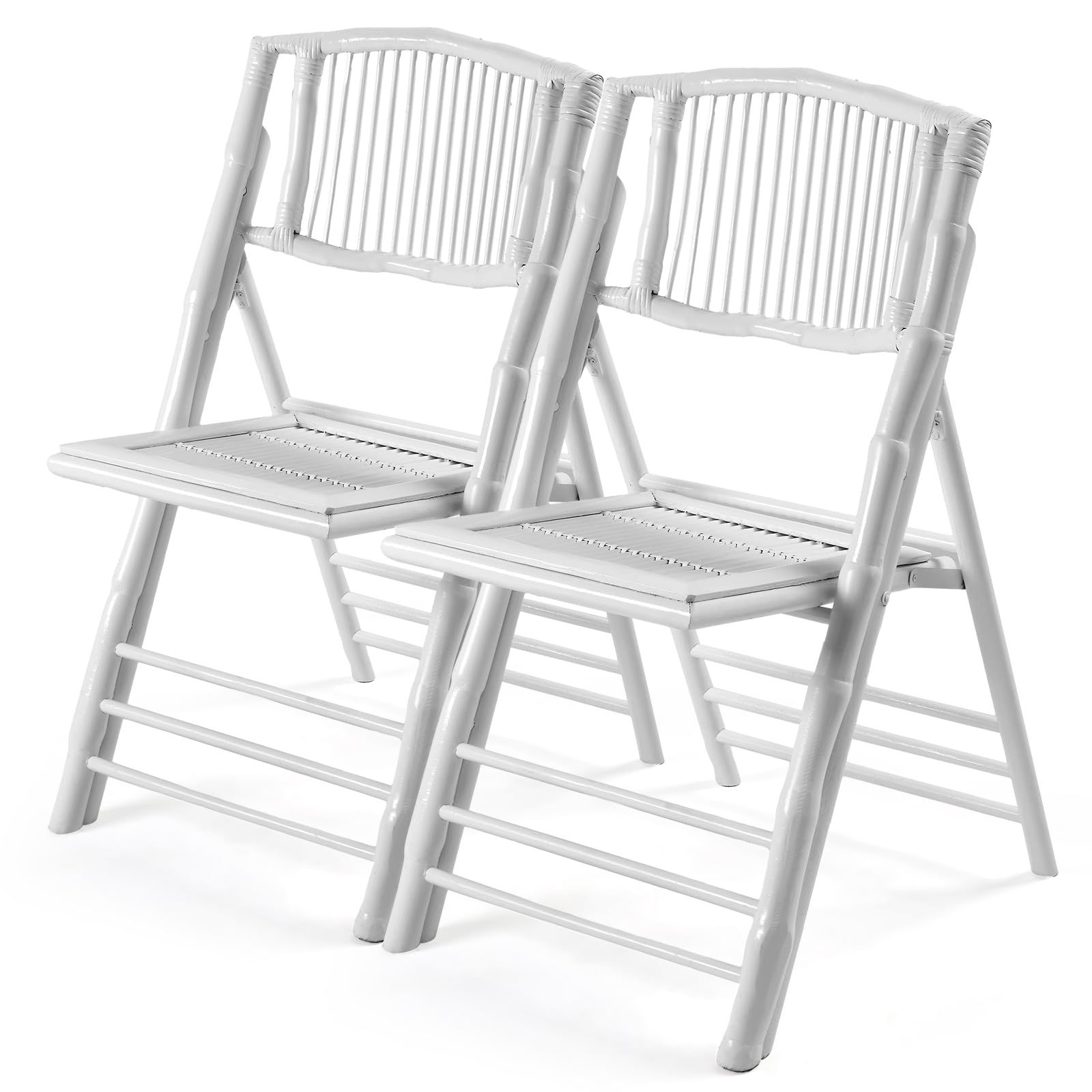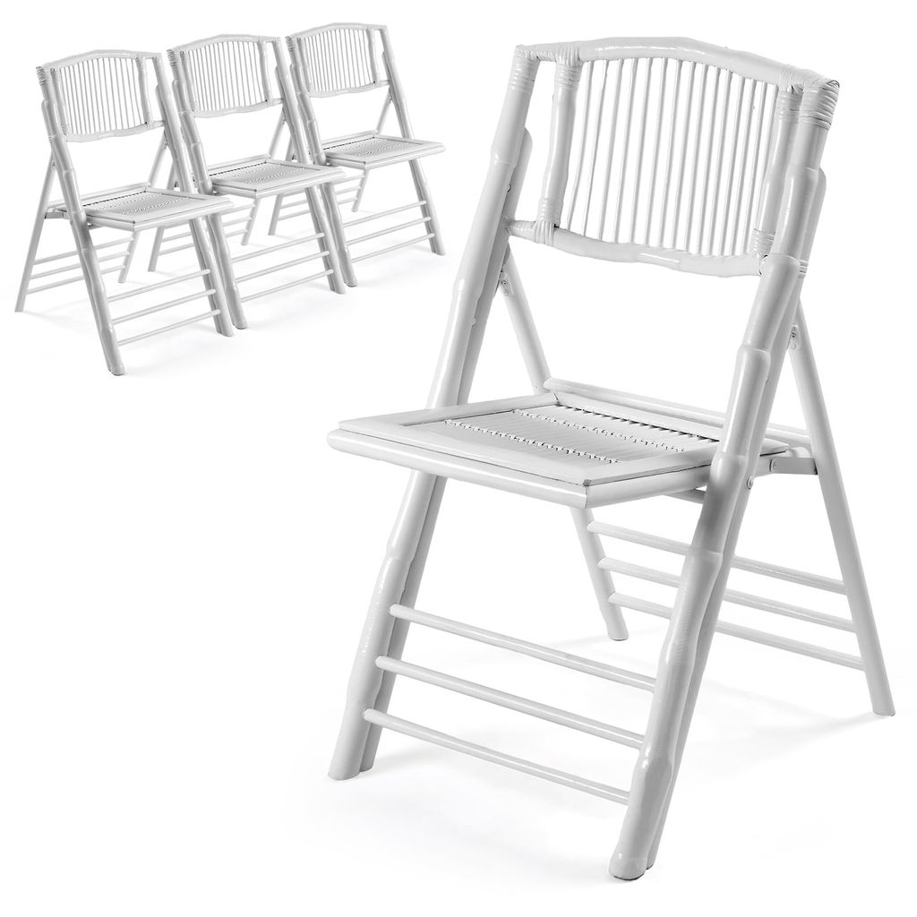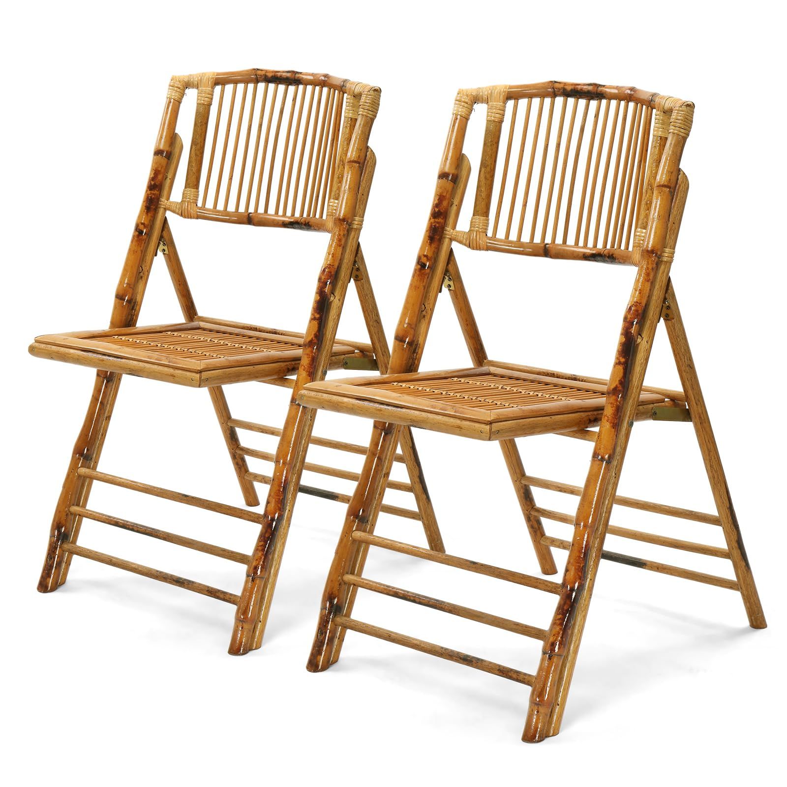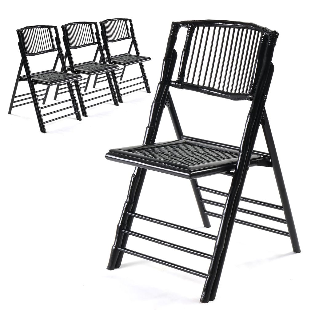 VINGLI Bamboo Folding Chair, Foldable Dining Wood Chairs Comfortable Seat for Outdoor & Indoor, Patio, Porch, Wedding, Party, Event,Brown (4 Pack)