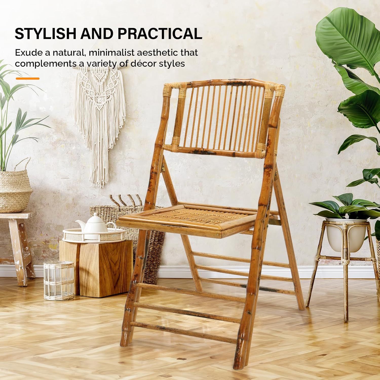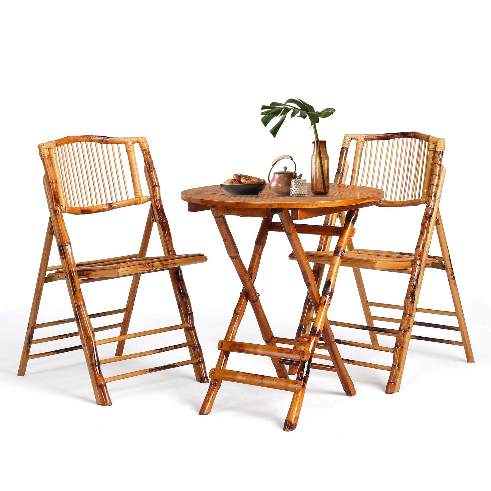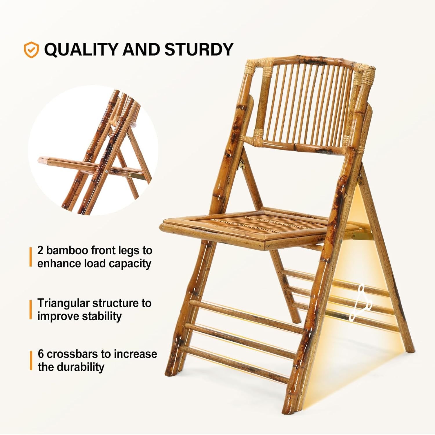 VINGLI Bamboo Folding Chair, Foldable Dining Wood Chairs Comfortable Seat for Outdoor & Indoor, Patio, Porch, Wedding, Party, Event,Brown (4 Pack)