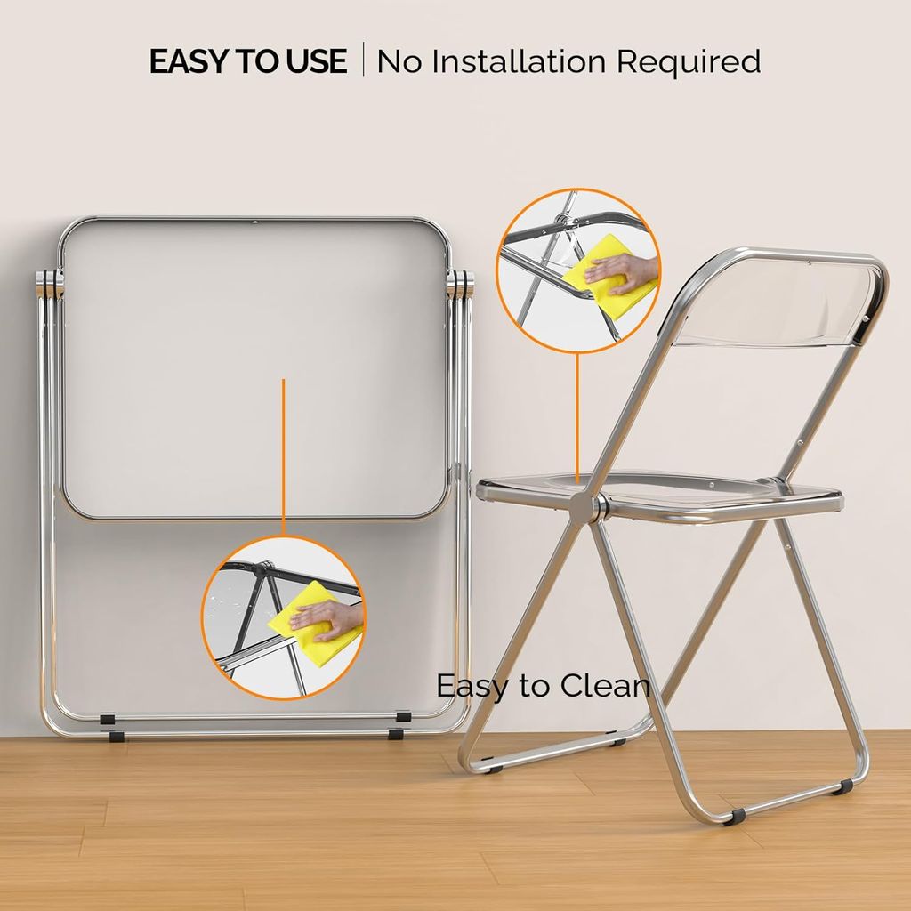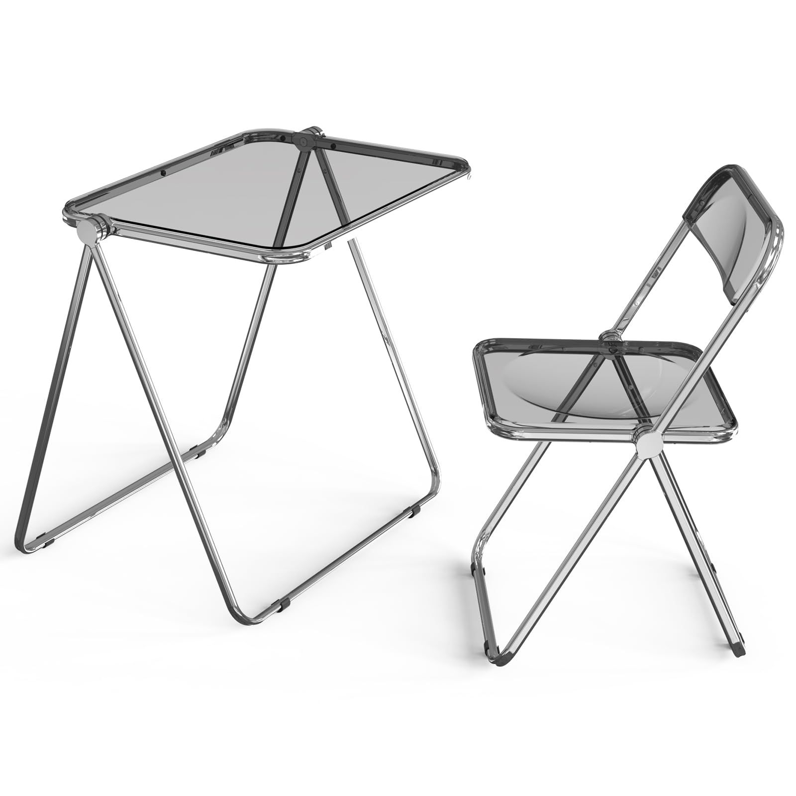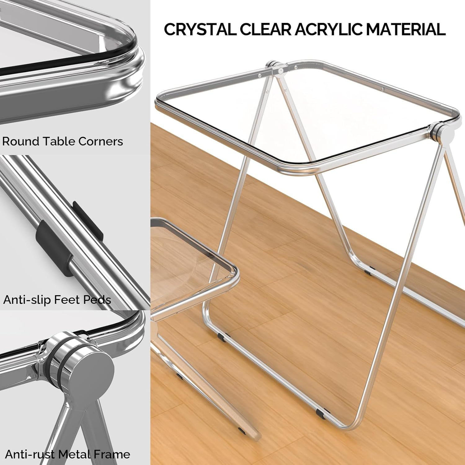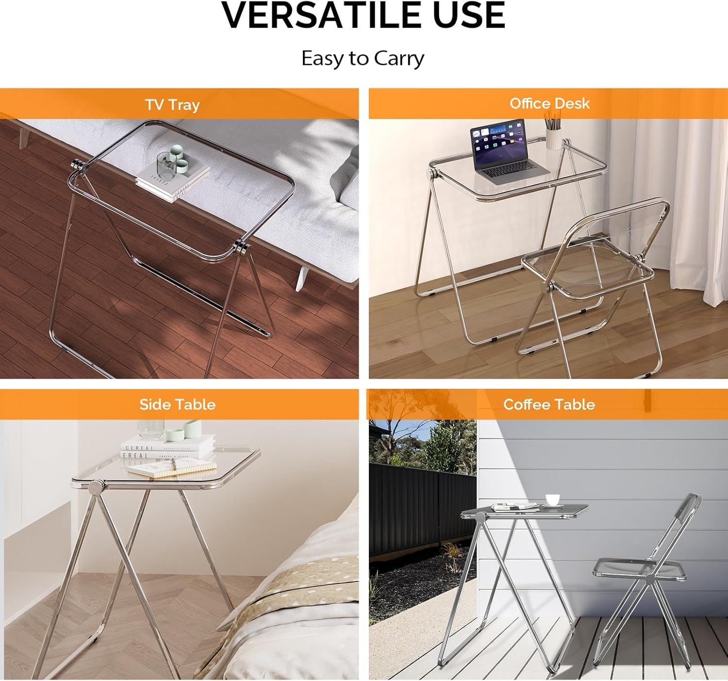 VINGLI Folding Acrylic Table and Chair Set Small TV Tray for Snack Dinner on Couch, Tiny Foldable Desk Writing Desk for Home Office for Small Spaces