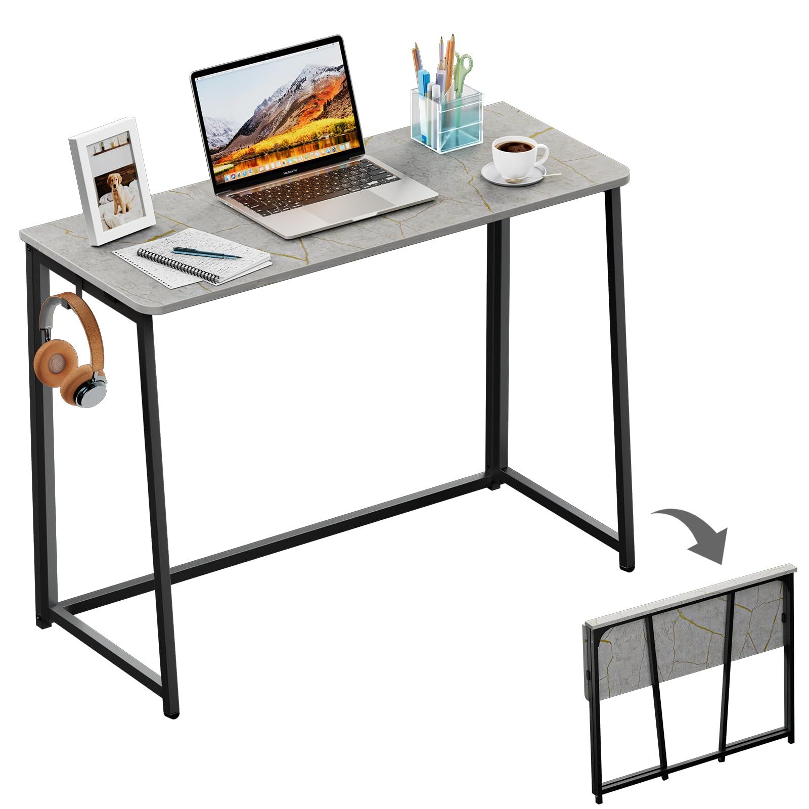 WOHOMO Folding Desk, Small Foldable Desk 31.5" for Small Spaces, Space Saving Computer Table Writing Workstation for Home Office, Easy Assembly, Oak
