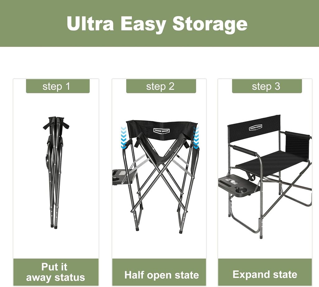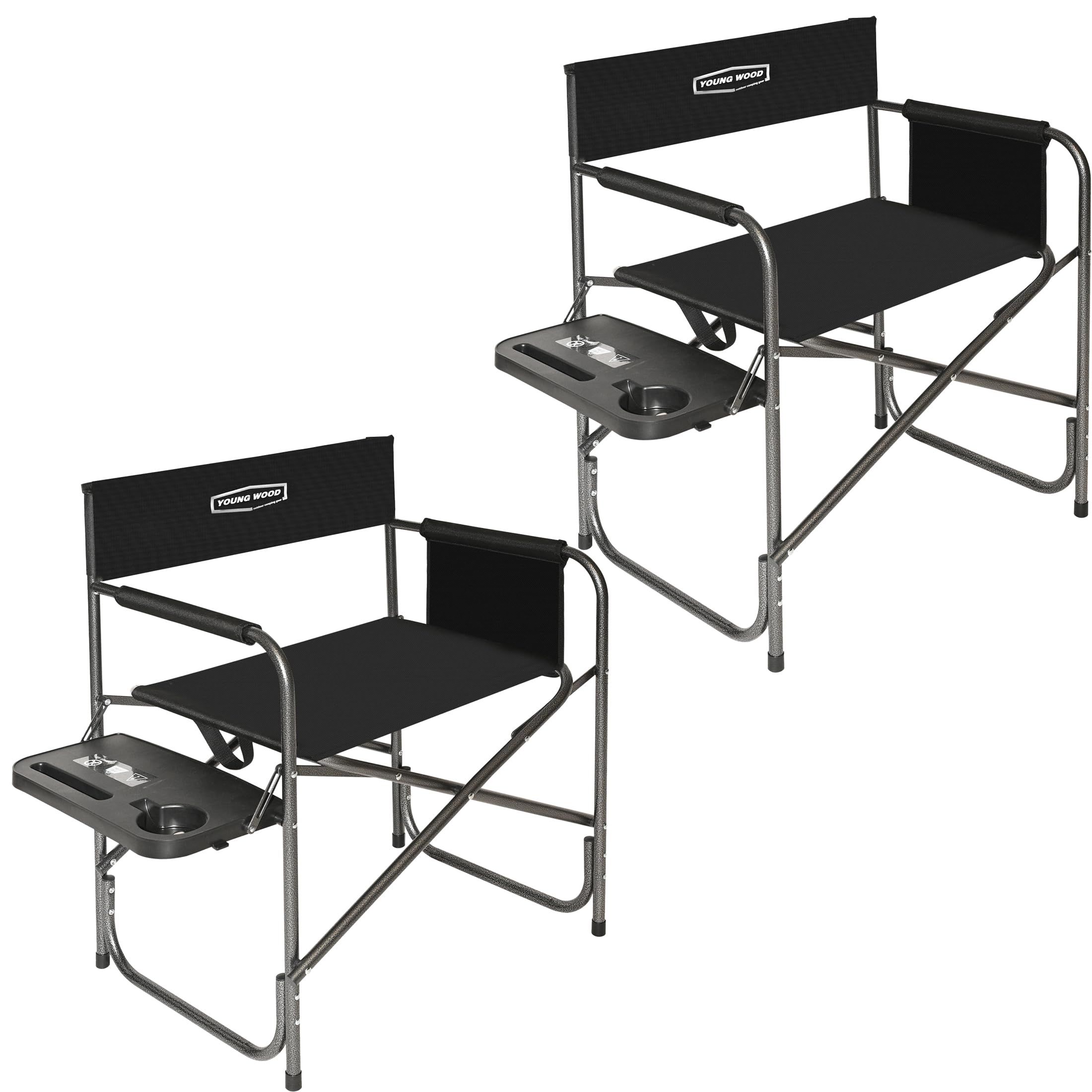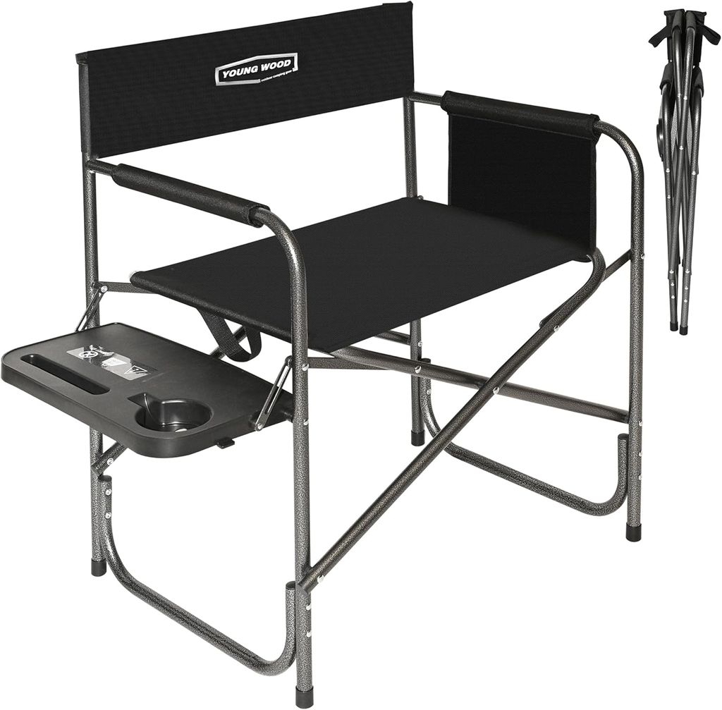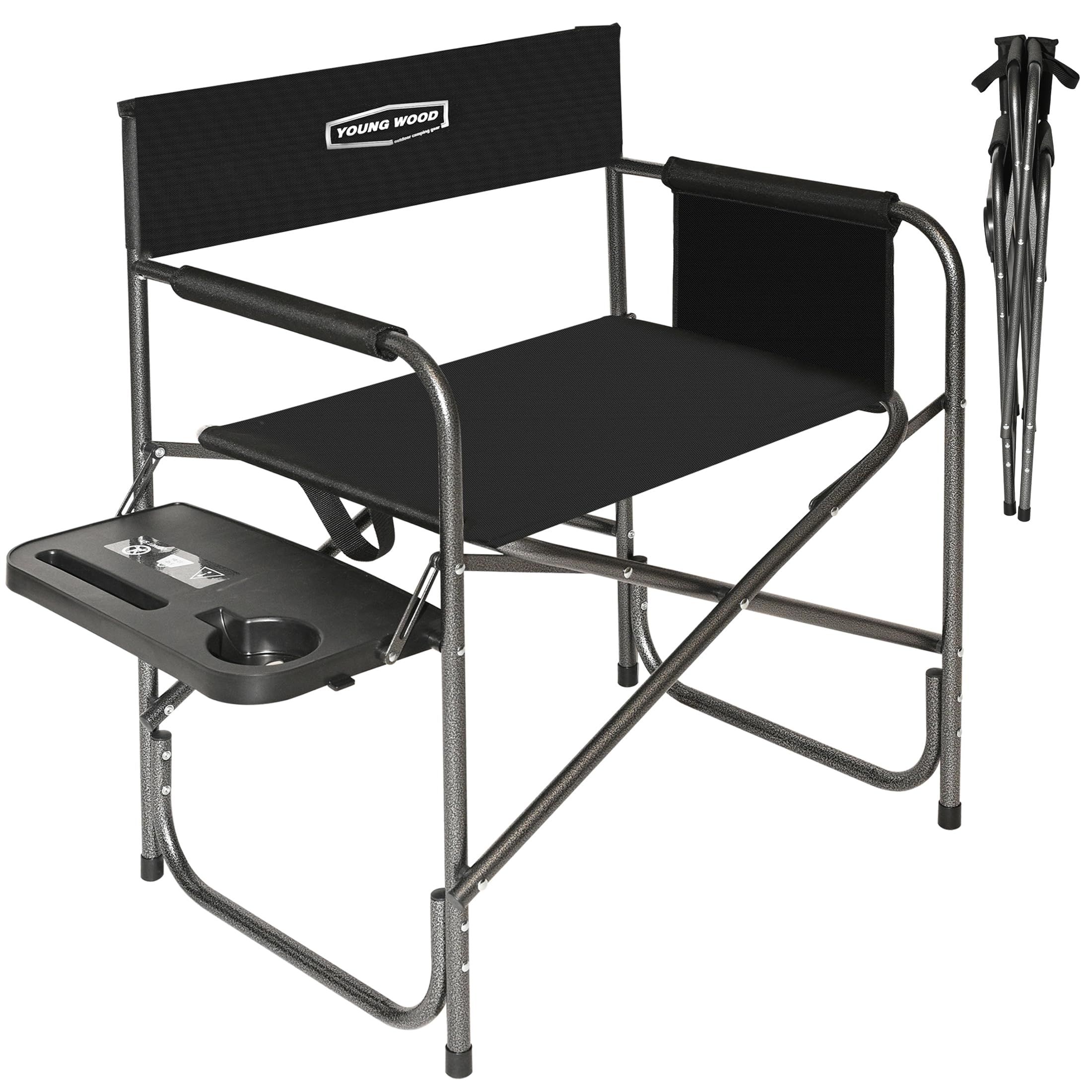 YOUNG WOOD Camping Directors Chair, Lightweight Oversized Portable Folding Chair with Side Table and Storage Pockets for Outdoor Camping, Lawn, Picnic and Fishing, Supports 400lbs (Black)