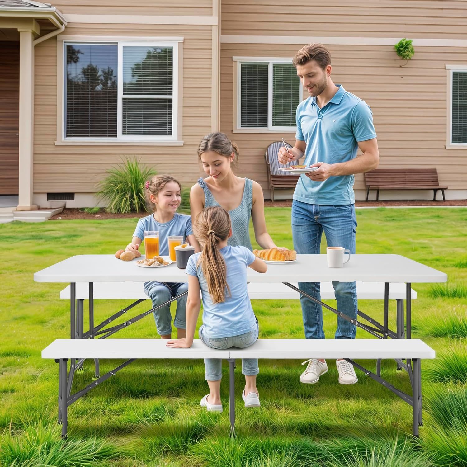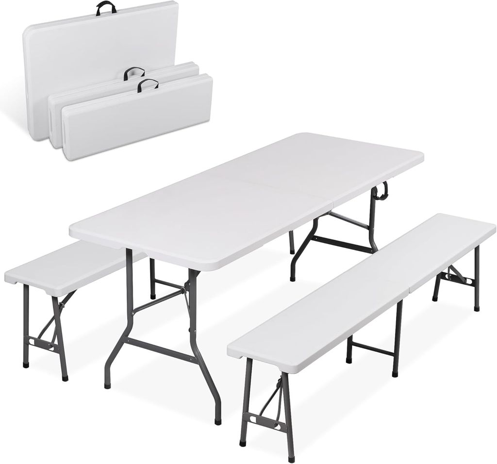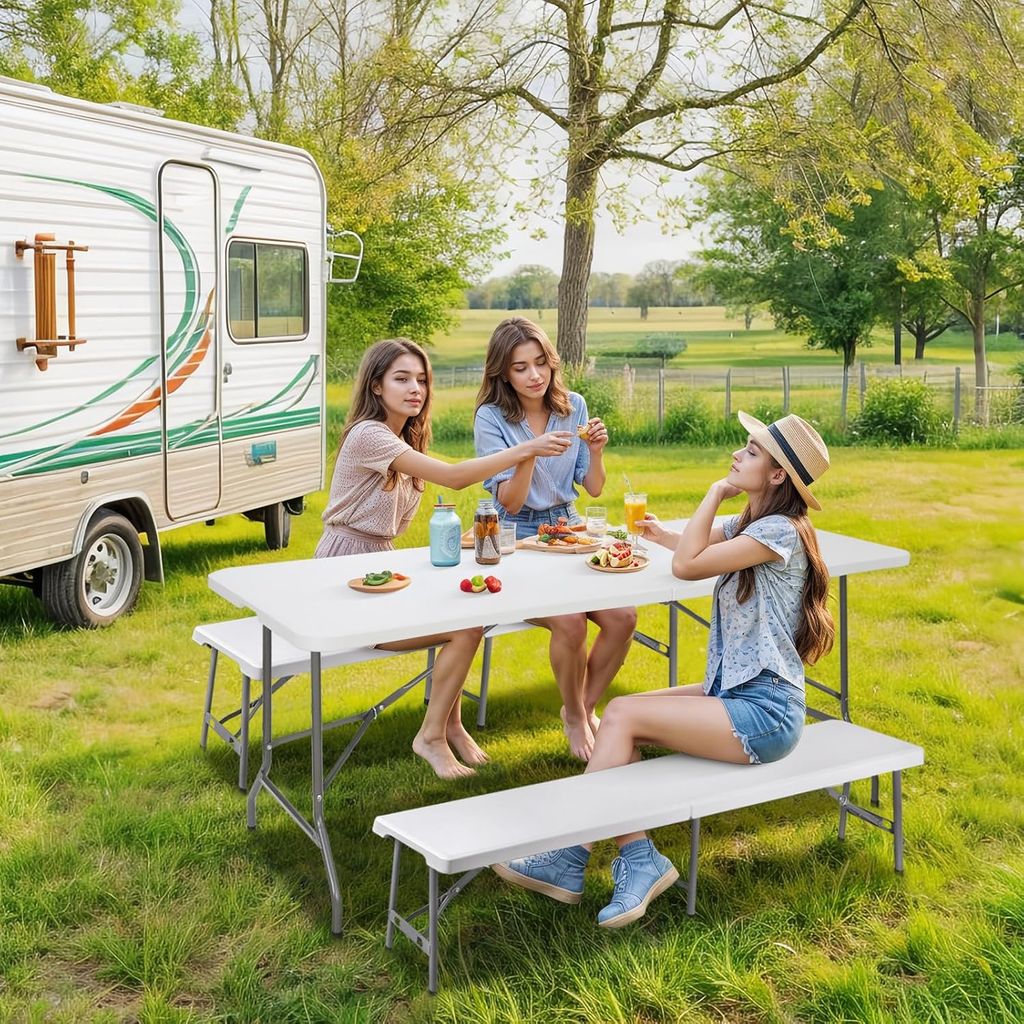 ZENY 6 Feet Picnic Table Set with 2 Benches, 3-Piece Camping Table Chair Set for Dining, Party, Garden, White